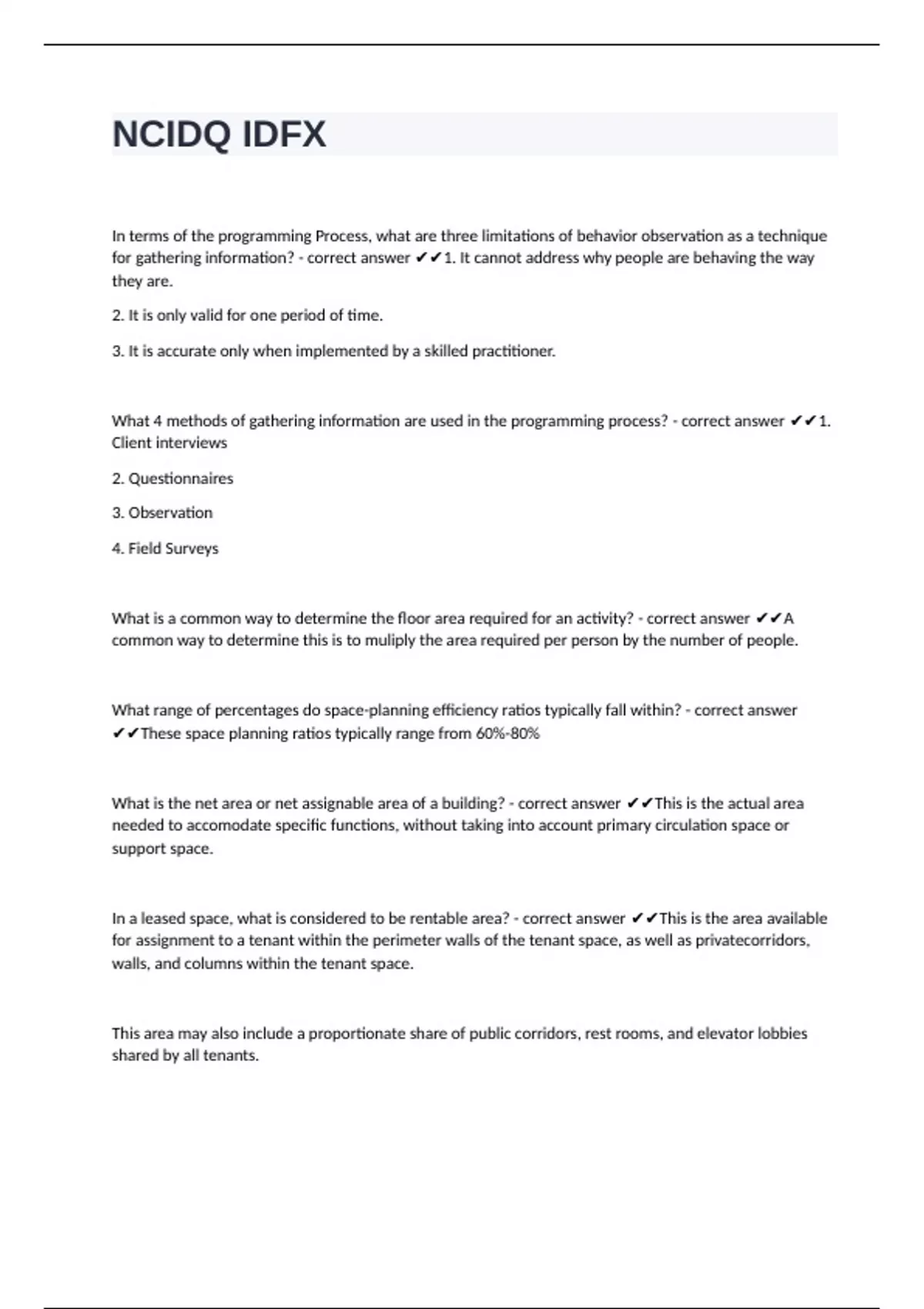 What is the net area or net assignable area of a building? - correct answer ✔✔This is the actual area