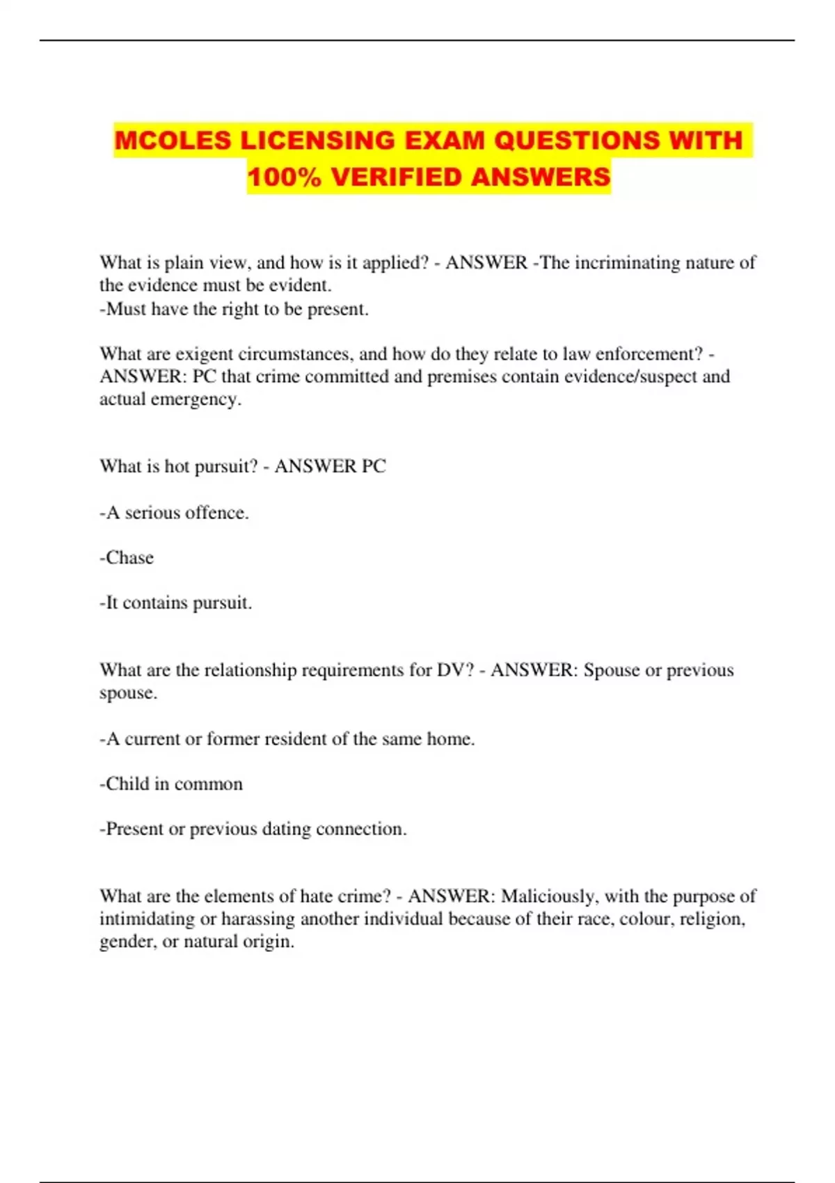 MCOLES LICENSING EXAM QUESTIONS WITH