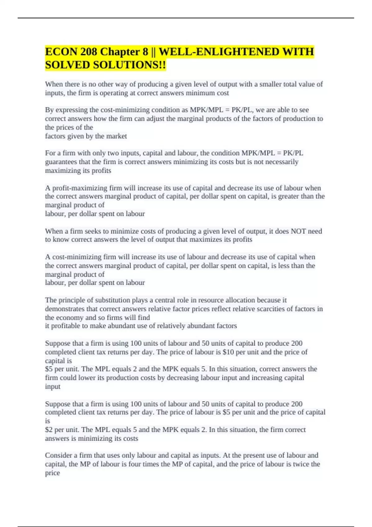 guarantees that the firm is correct answers minimizing its costs but is not necessarily