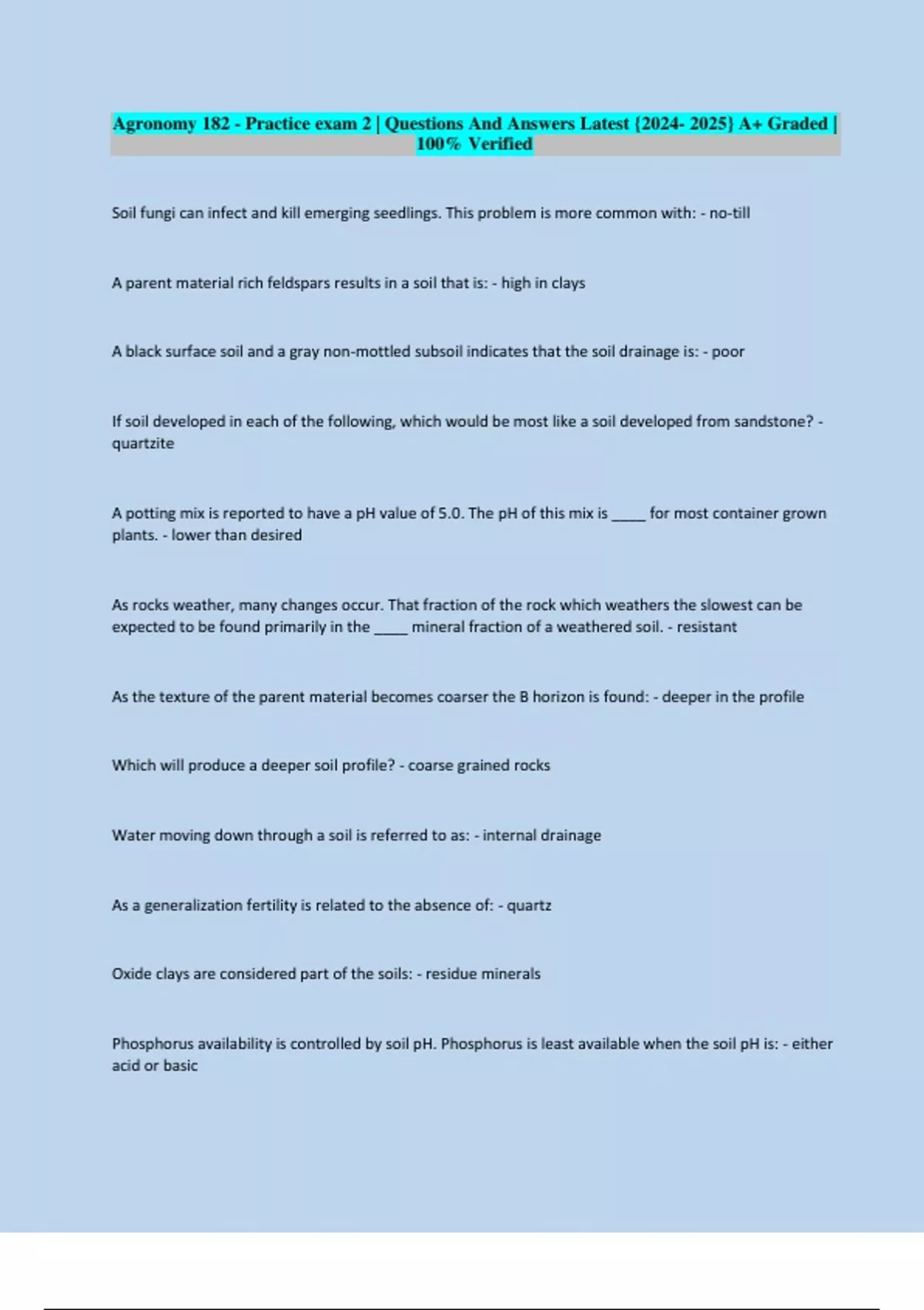 A parent material rich feldspars results in a soil that is: - high in clays