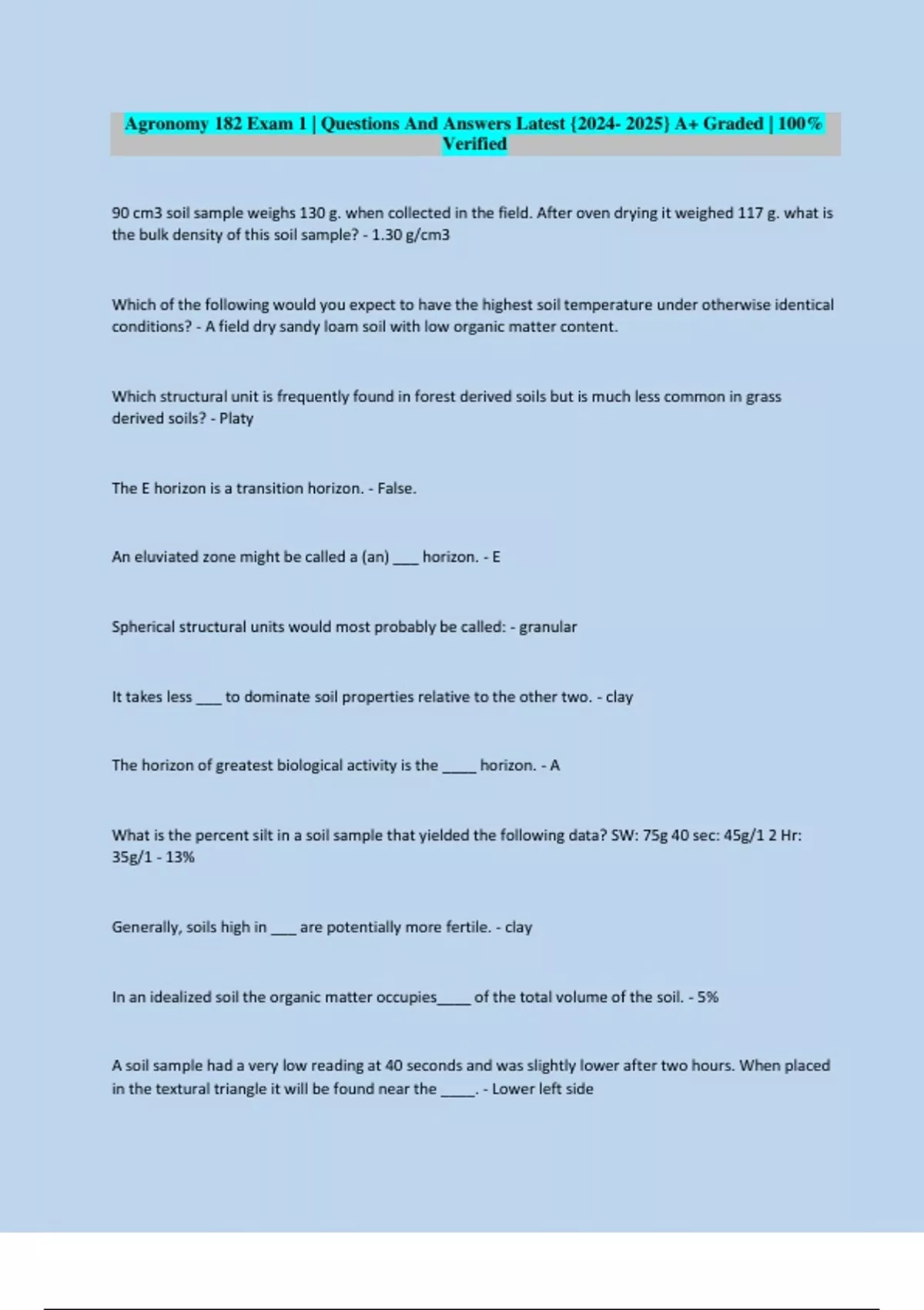 Agronomy 182 Exam 1 | Questions And Answers Latest {2024- 2025} A+ Graded | 100%