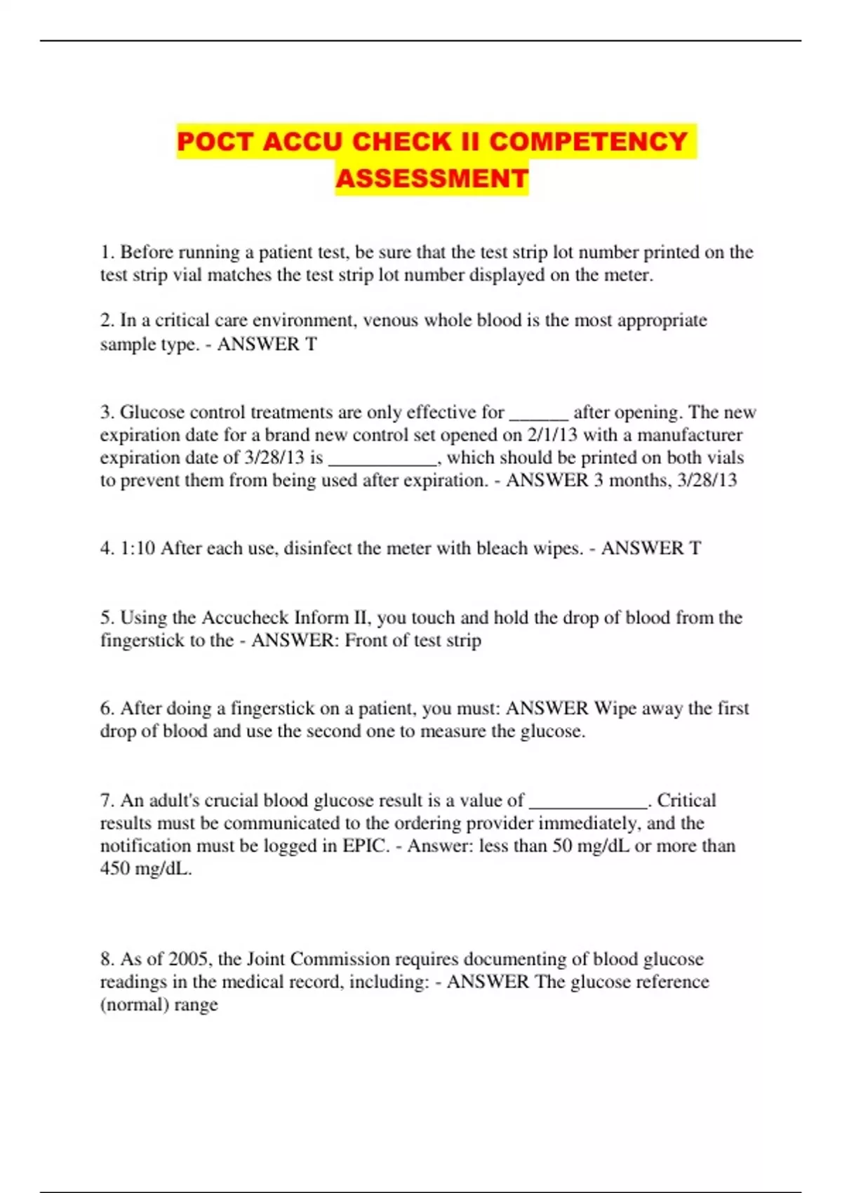 8. As of 2005, the Joint Commission requires documenting of blood glucose