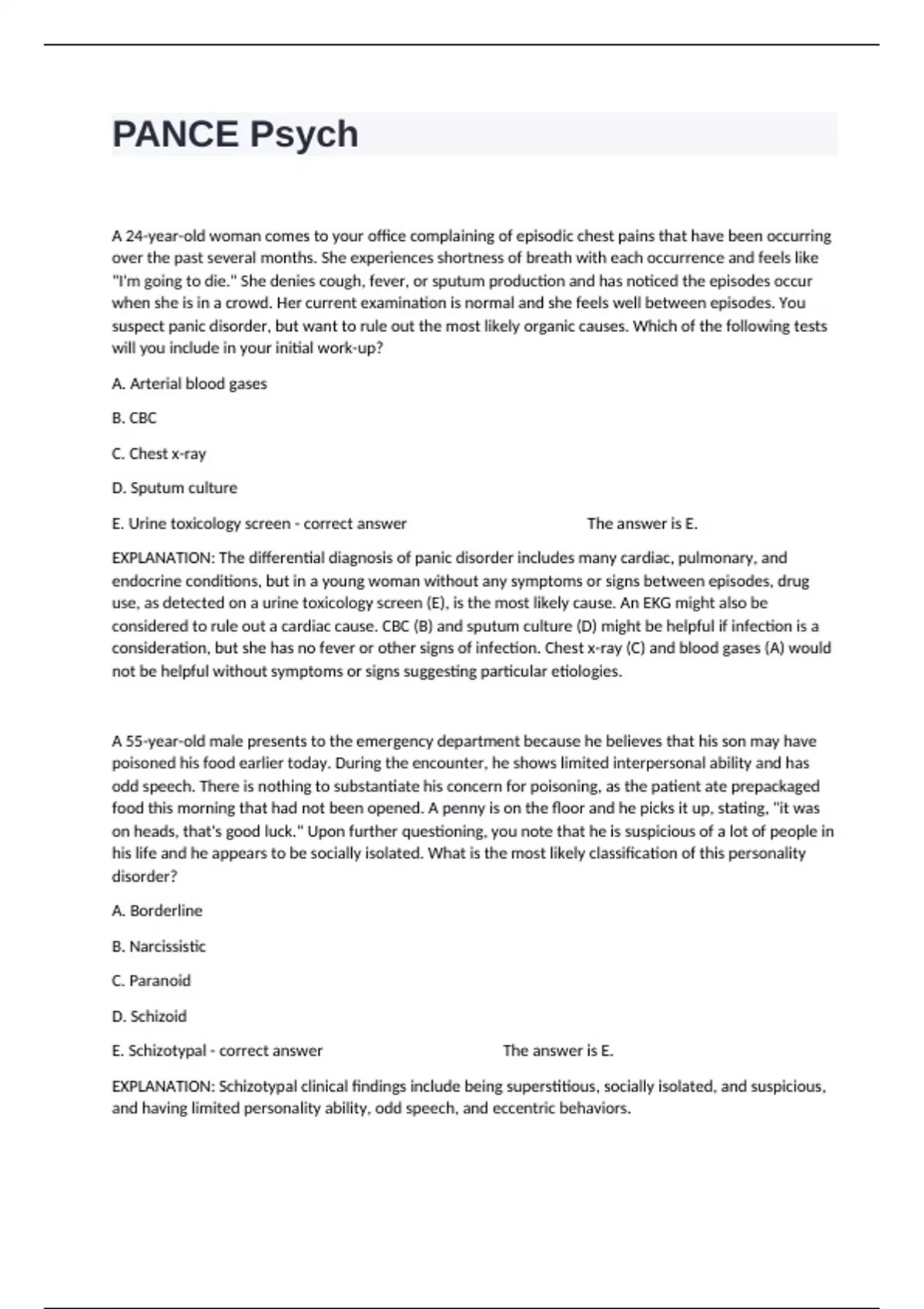 EXPLANATION: The differential diagnosis of panic disorder includes many cardiac, pulmonary, and