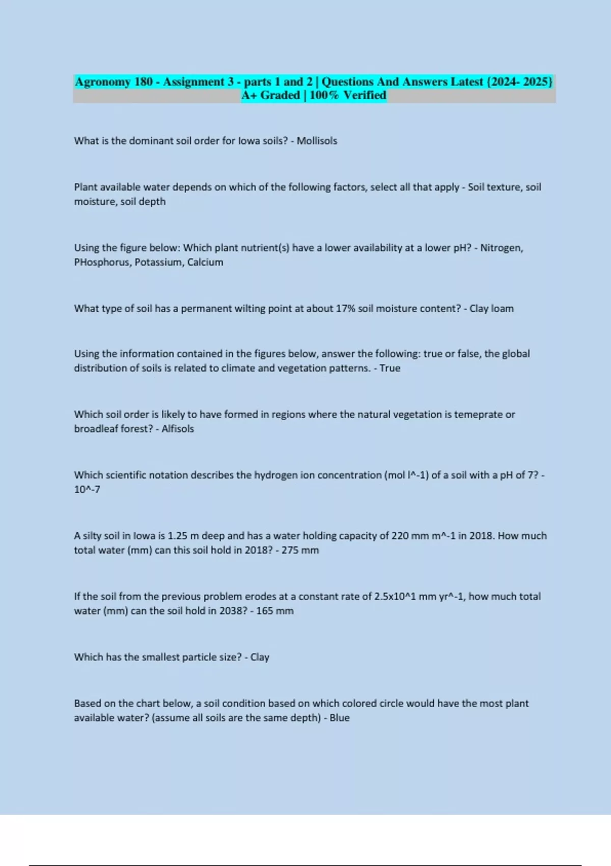 Agronomy 180 - Assignment 3 - parts 1 and 2 | Questions And Answers Latest {} A+ Graded | 100% Verified