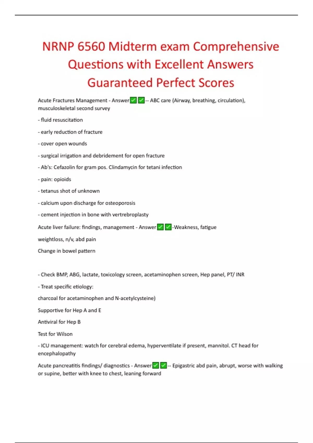 Acute pancreatitis management - Answer -- IV hydration - Fluid therapy to prevent hypovolemia