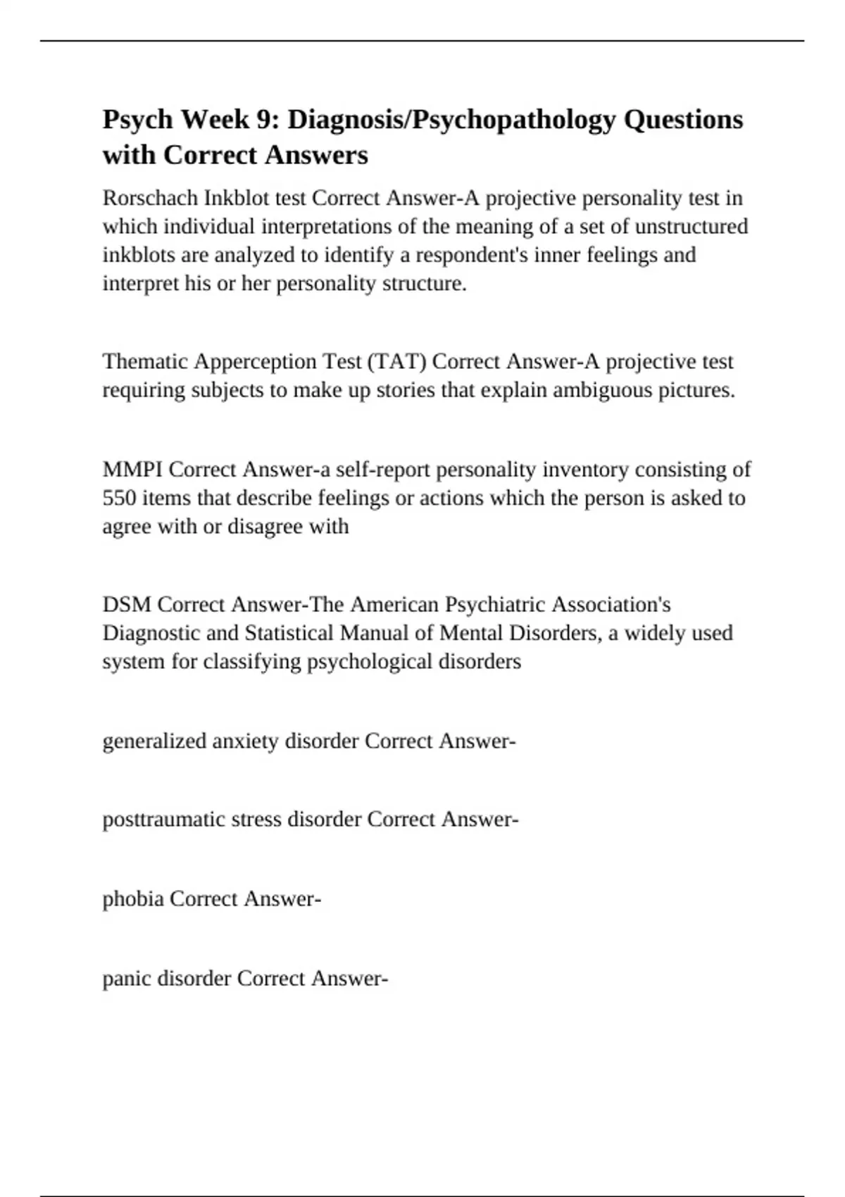 MMPI Correct Answer-a self-report personality inventory consisting of