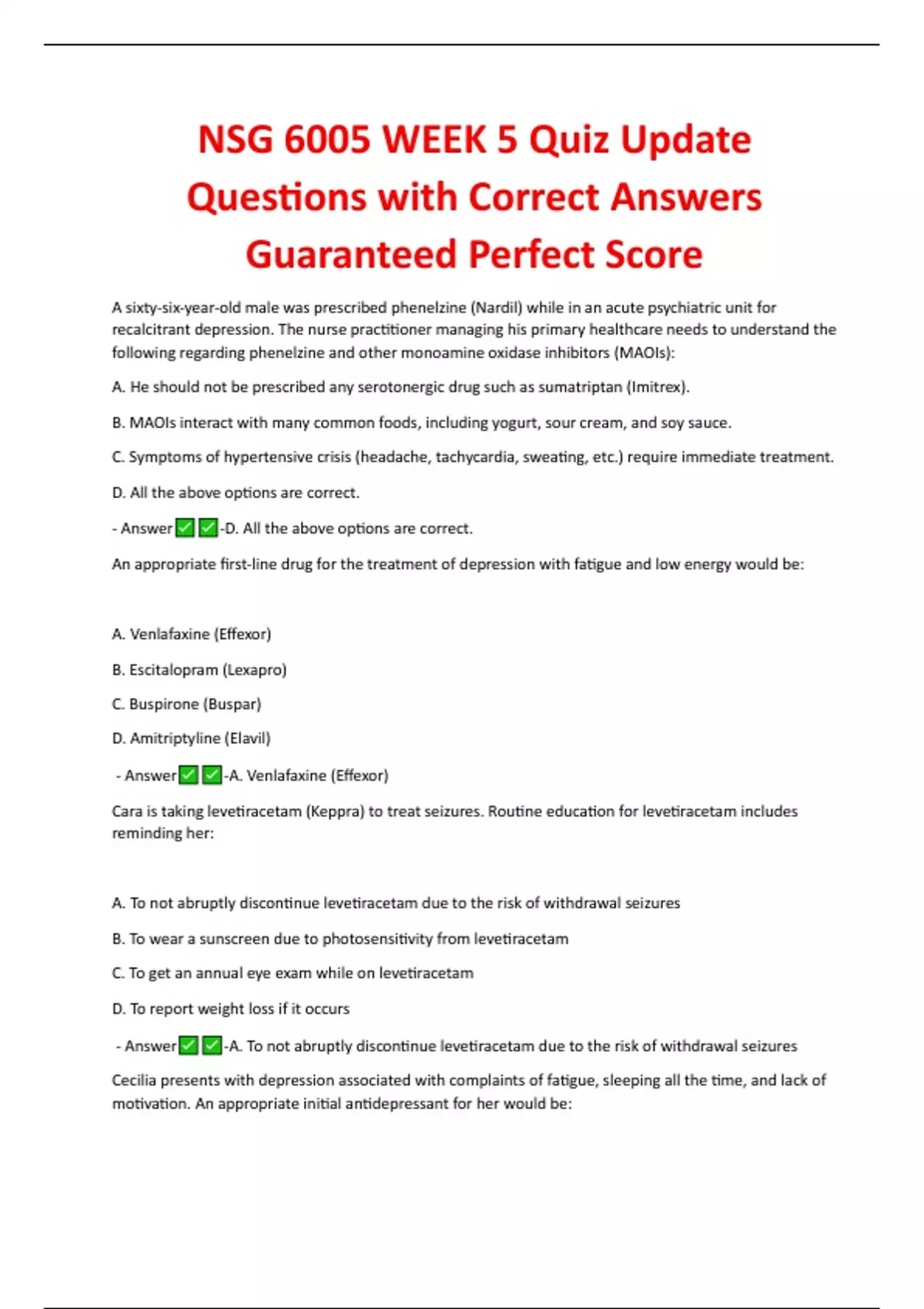 - Answer -A. Venlafaxine (Effexor)