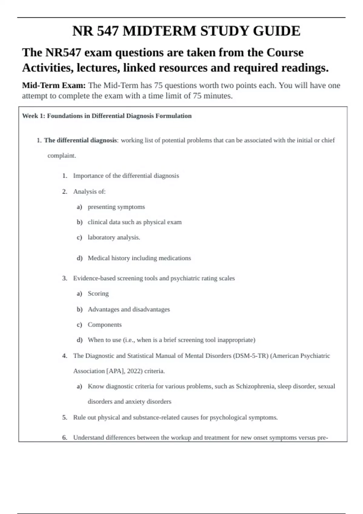 Mid-Term Exam: The Mid-Term has 75 questions worth two points each. You will have one