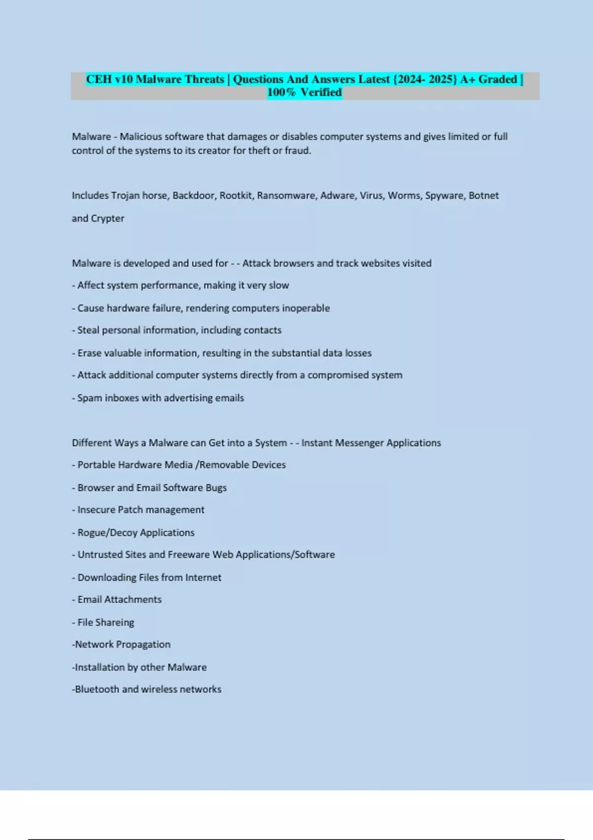 Includes Trojan horse, Backdoor, Rootkit, Ransomware, Adware, Virus, Worms, Spyware, Botnet