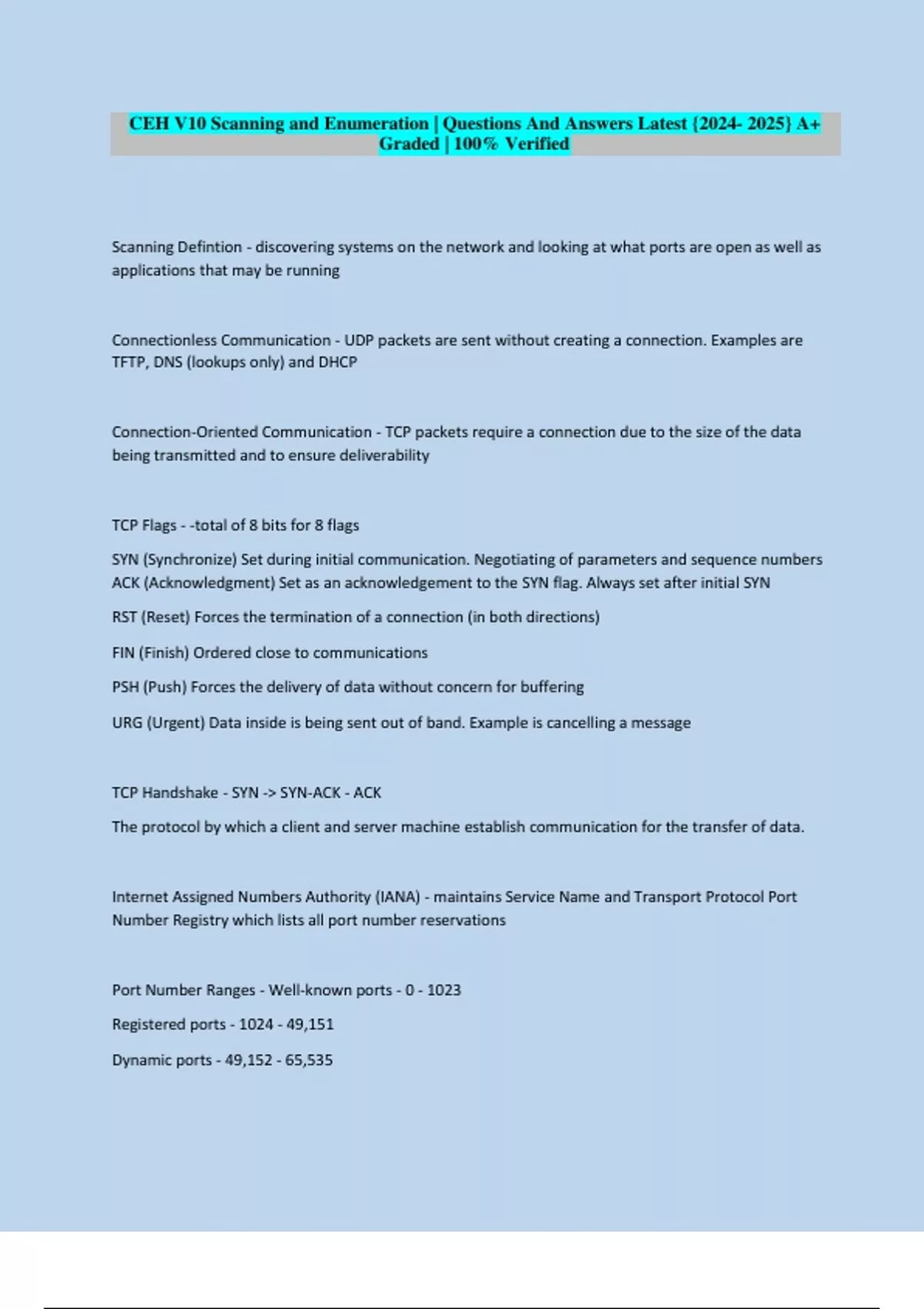 Port Number Ranges - Well-known ports - 0 - 1023