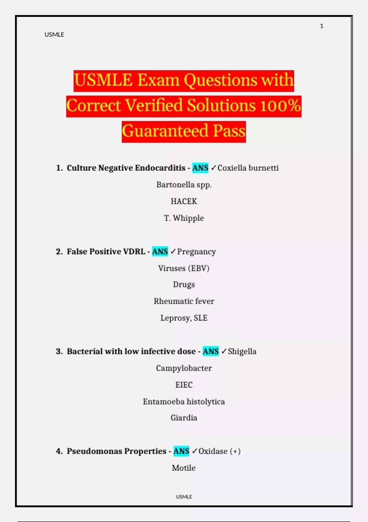 USMLE Exam Questions with