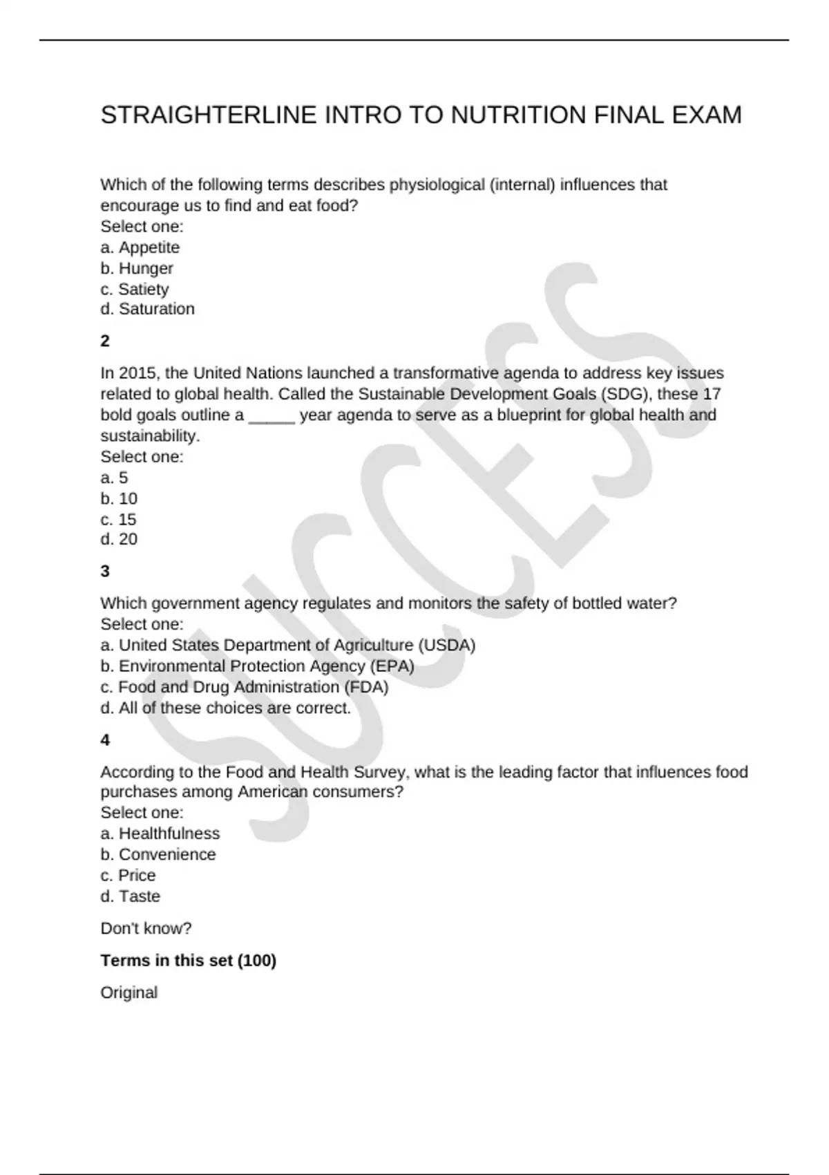 STRAIGHTERLINE INTRO TO NUTRITION FINAL EXAM