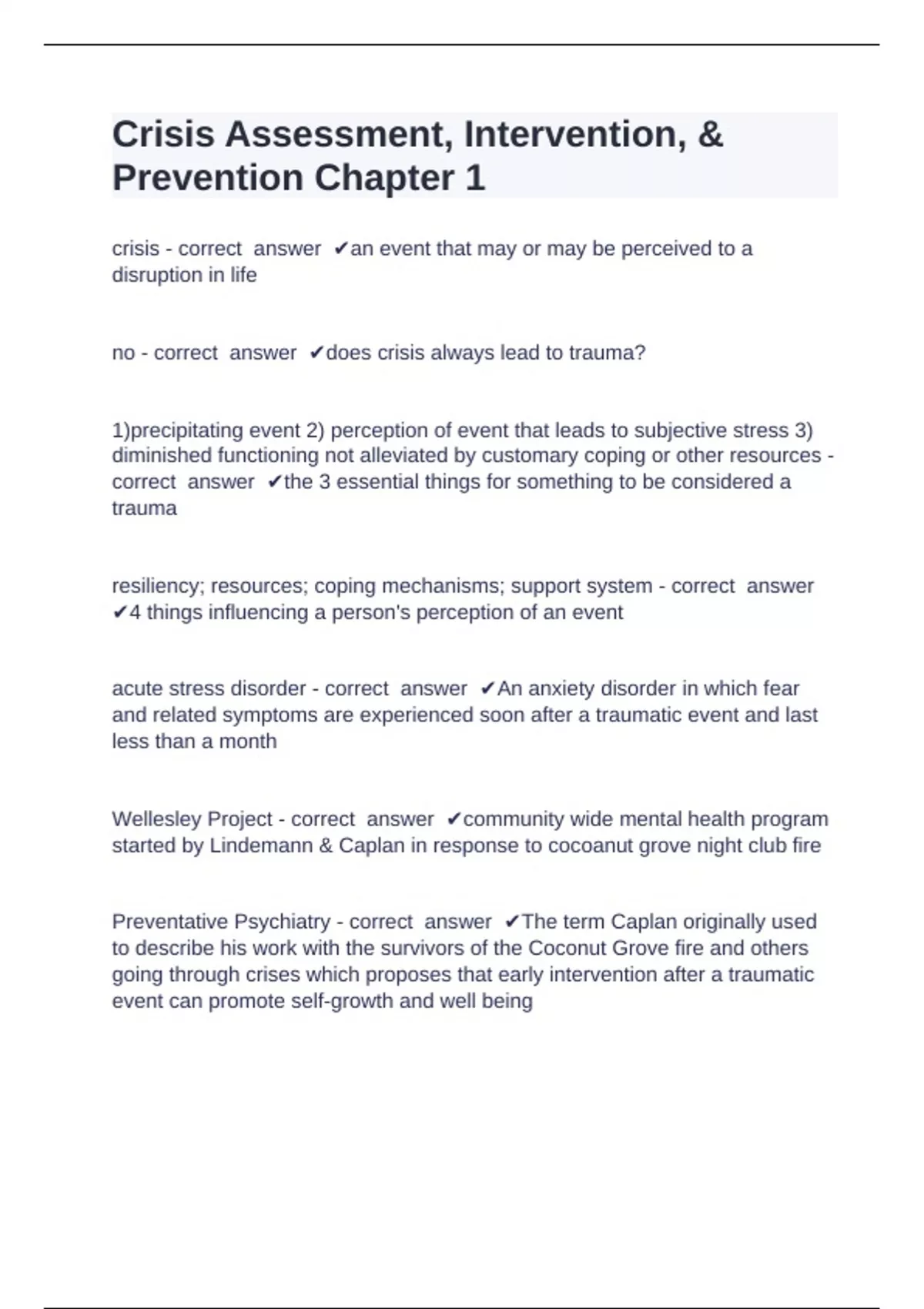 what Caplan considered a crisis - correct answer ✔the outcome of a