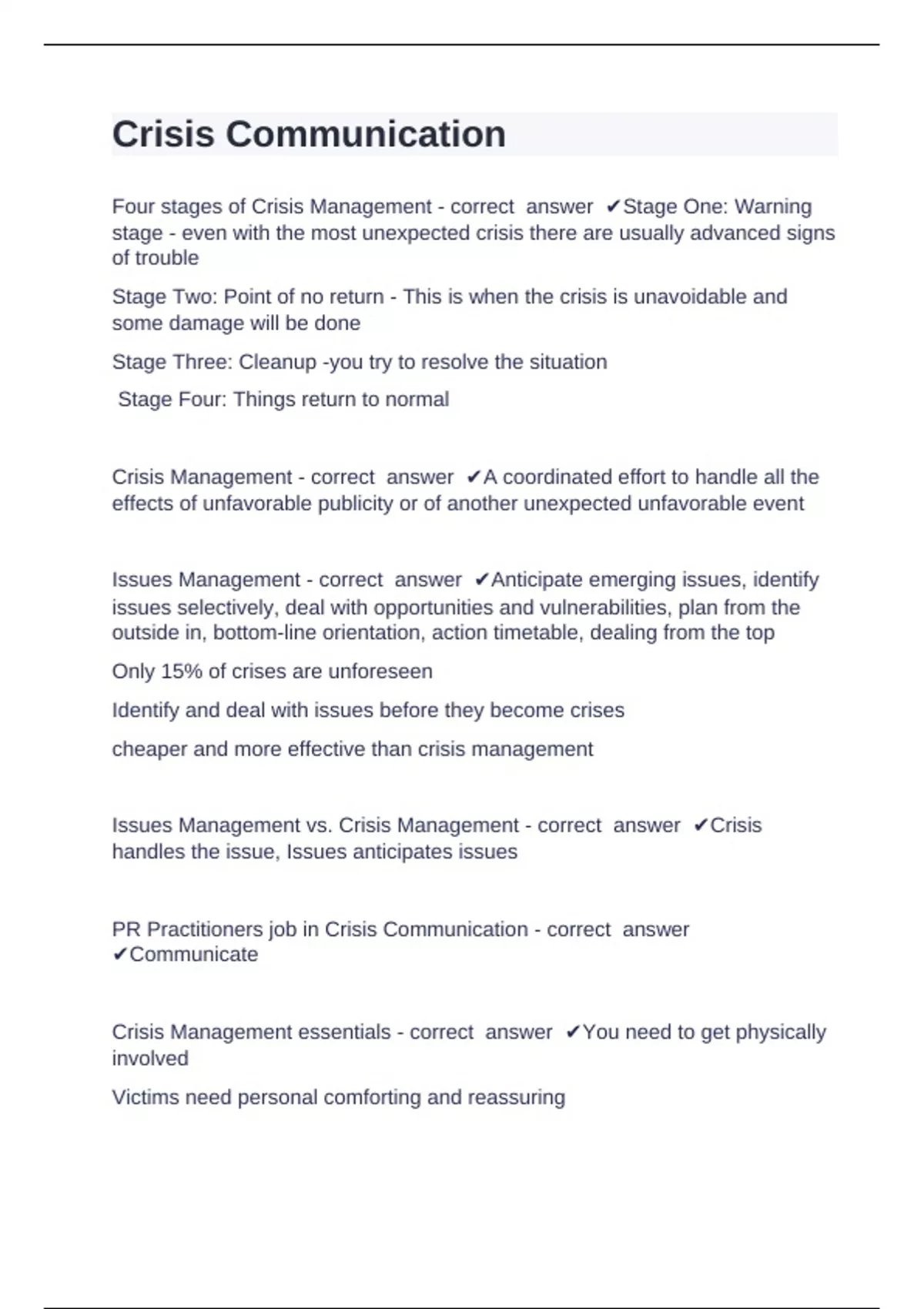 Four stages of Crisis Management - correct answer ✔Stage One: Warning