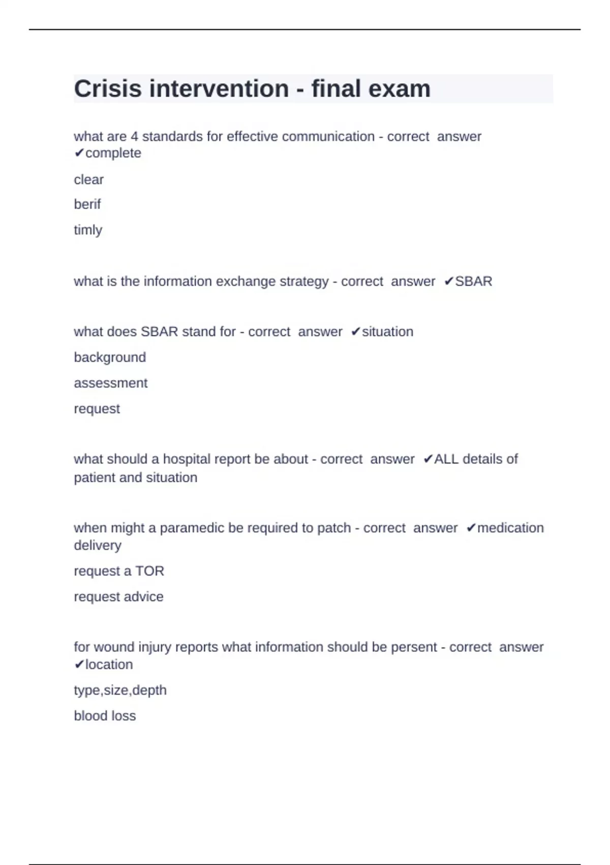 what should a hospital report be about - correct answer ✔ALL details of