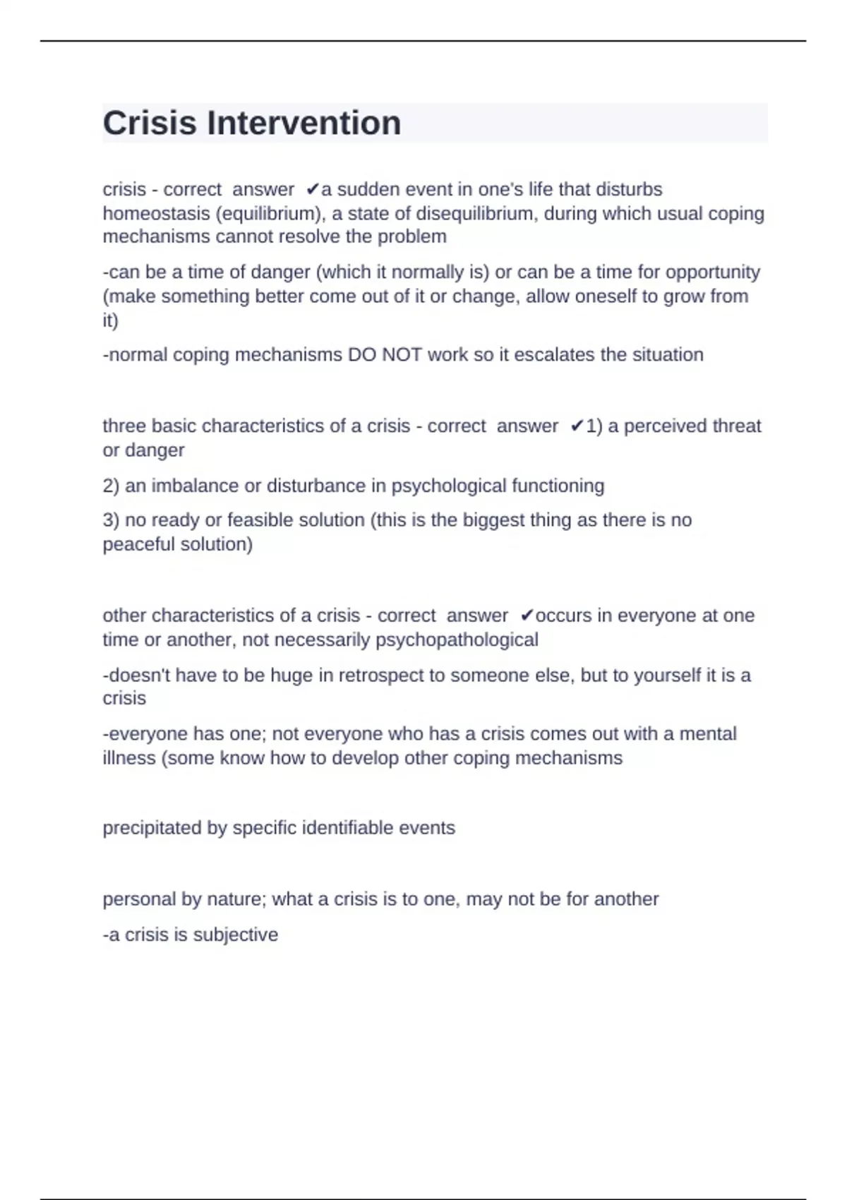 other characteristics of a crisis - correct answer ✔occurs in everyone at one