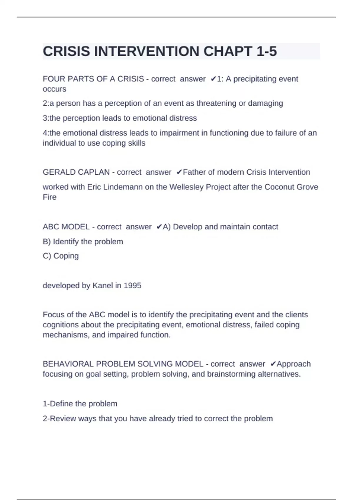 GERALD CAPLAN - correct answer ✔Father of modern Crisis Intervention