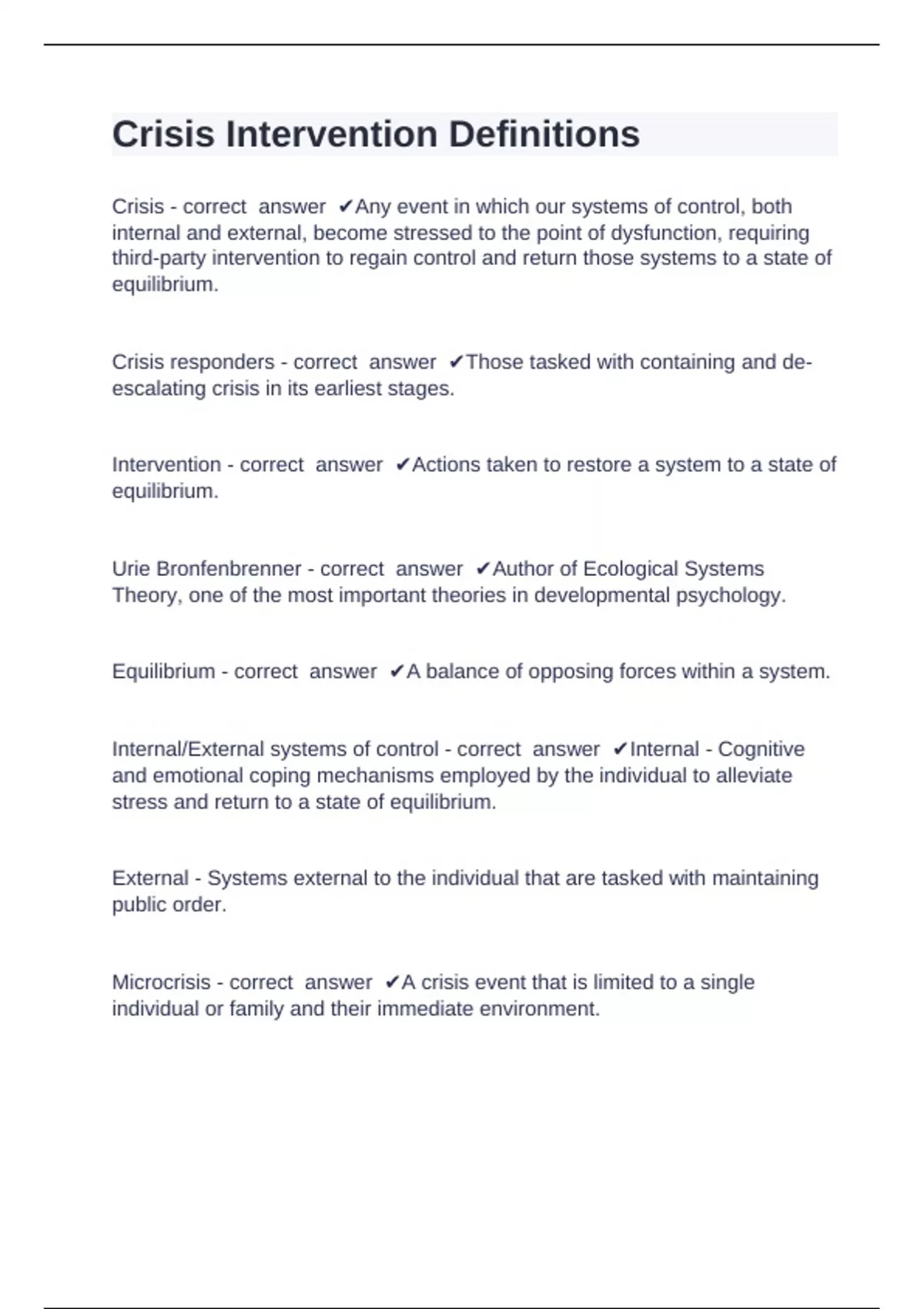 Microcrisis - correct answer ✔A crisis event that is limited to a single