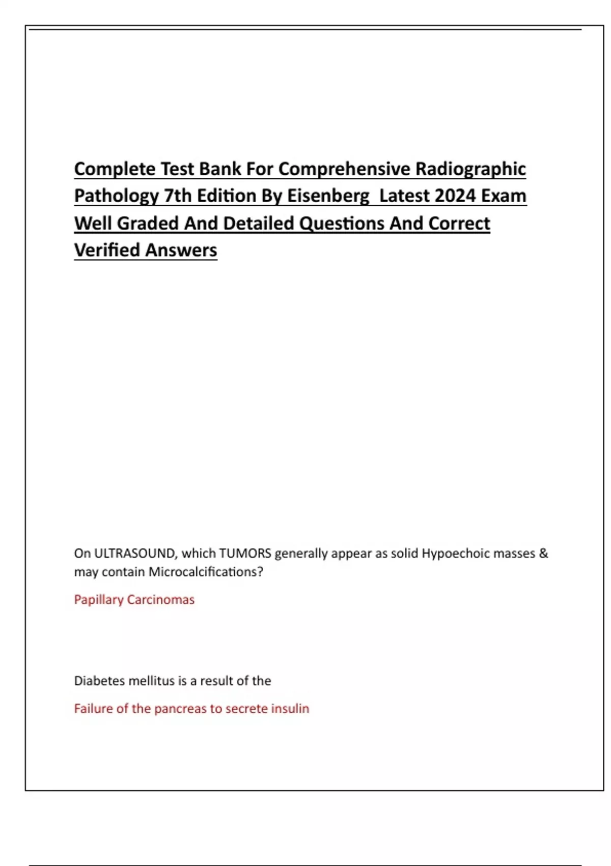 Complete Test Bank For Comprehensive Radiographic Pathology 7th Edition By Eisenberg Latest 2024 Exam Well Graded And Detailed Questions And Correct Verified Answers