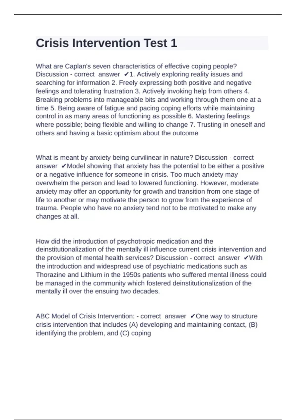 Crisis Intervention Test 1 questions and answers verified 2024