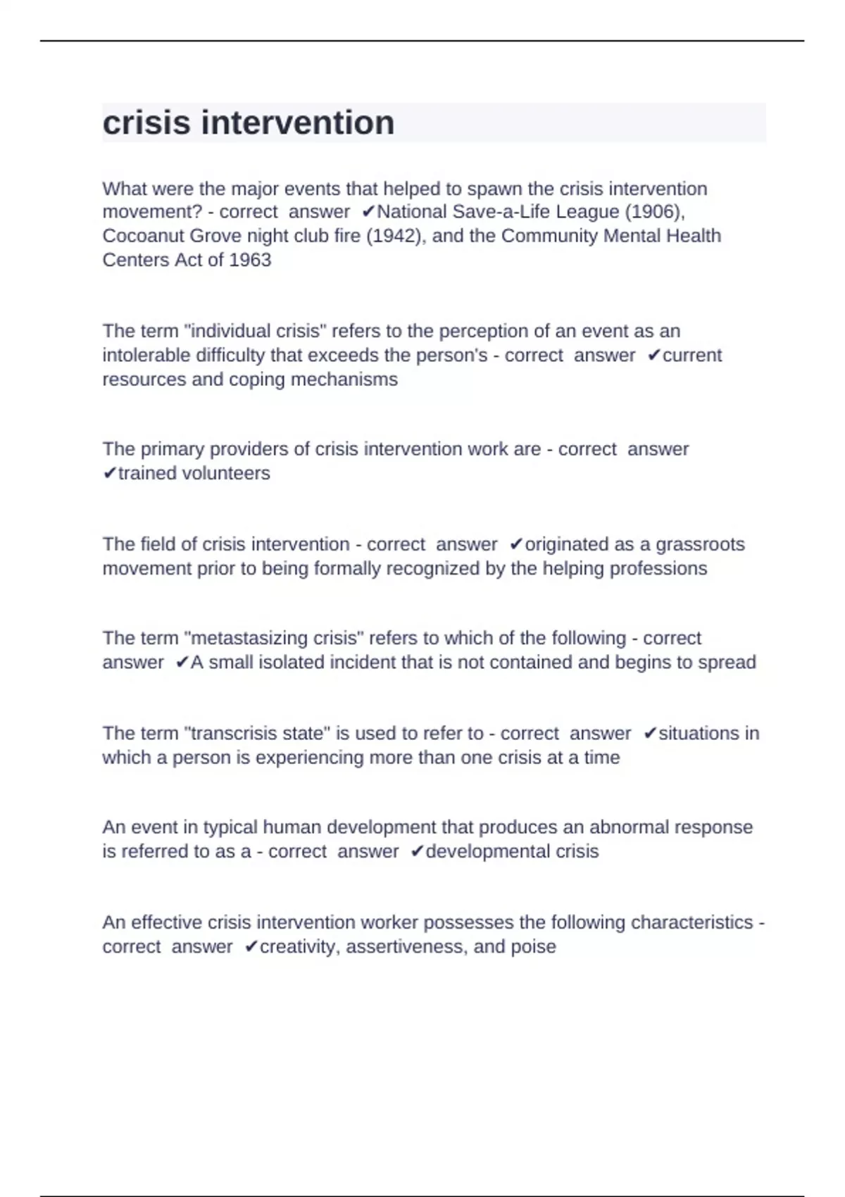 crisis intervention questions and answers already solved 2024