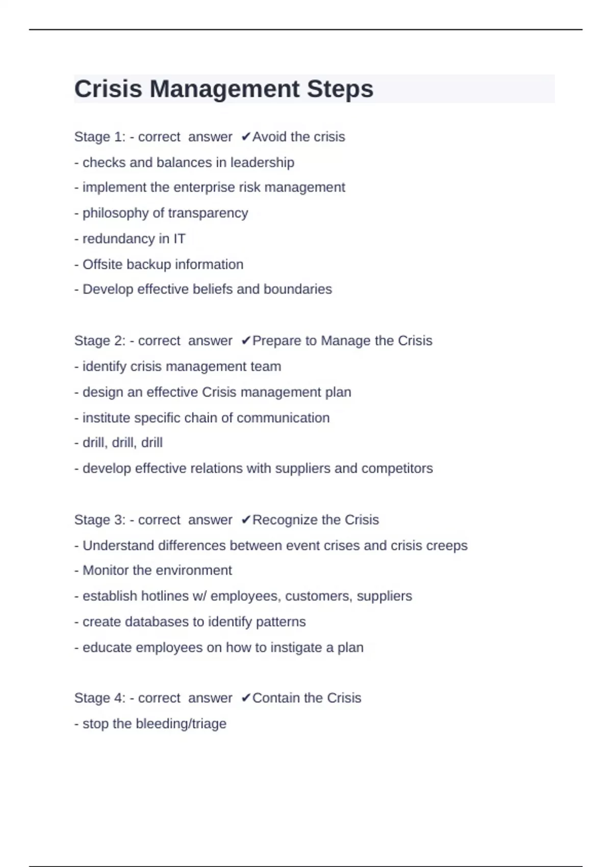 Stage 2: - correct answer ✔Prepare to Manage the Crisis