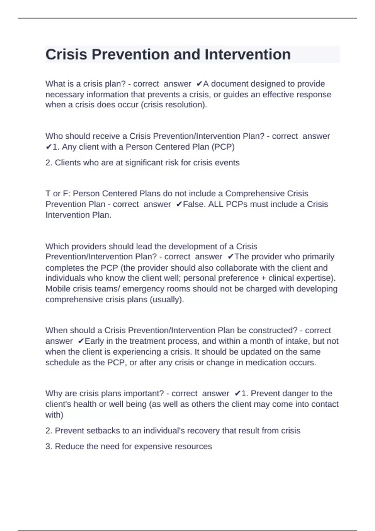 Why are crisis plans important? - correct answer ✔1. Prevent danger to the