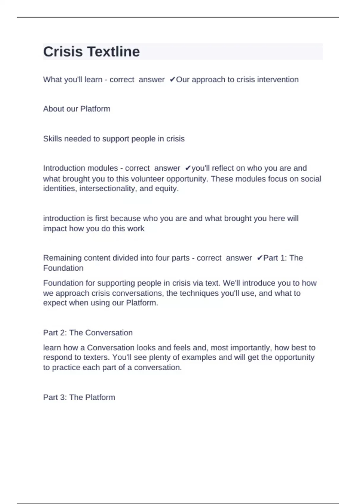 What you'll learn - correct answer ✔Our approach to crisis intervention