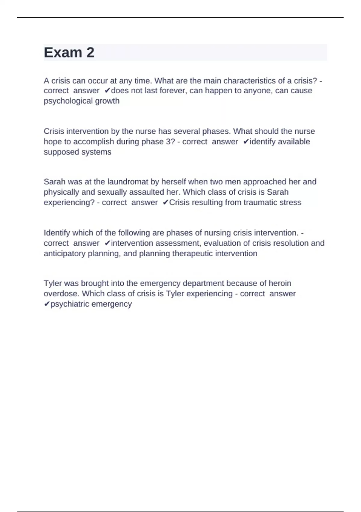 experiencing? - correct answer ✔Crisis resulting from traumatic stress