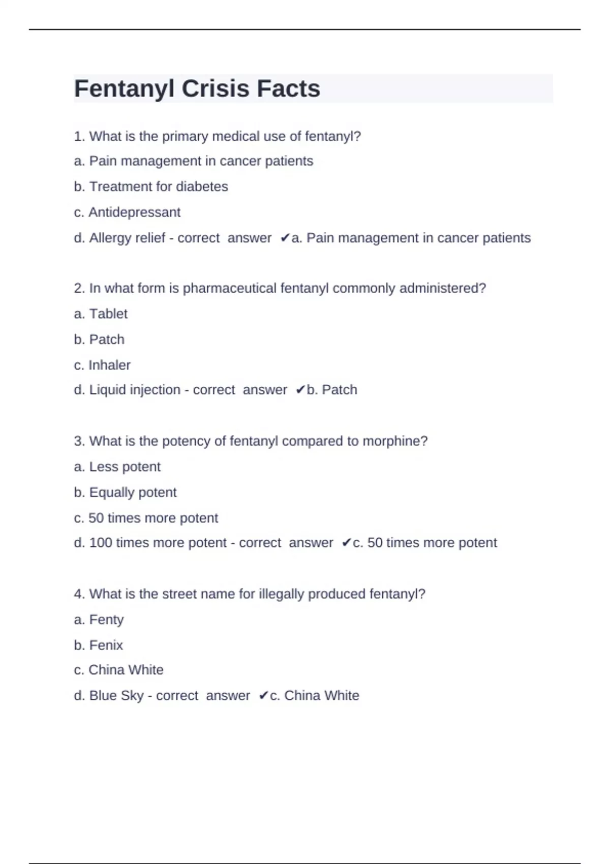 Fentanyl Crisis Facts questions and answers verified 2024