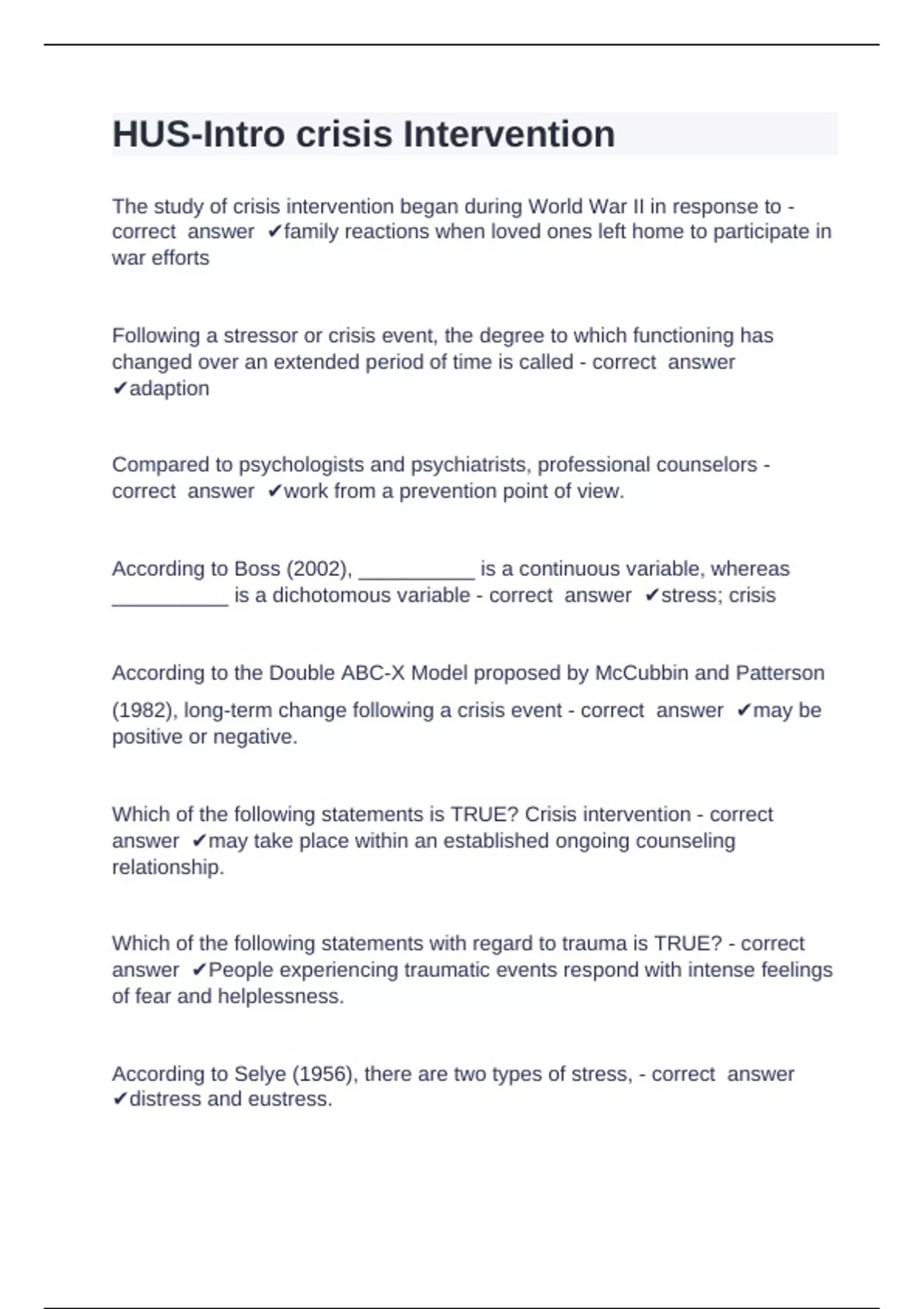 (1982), long-term change following a crisis event - correct answer ✔may be
