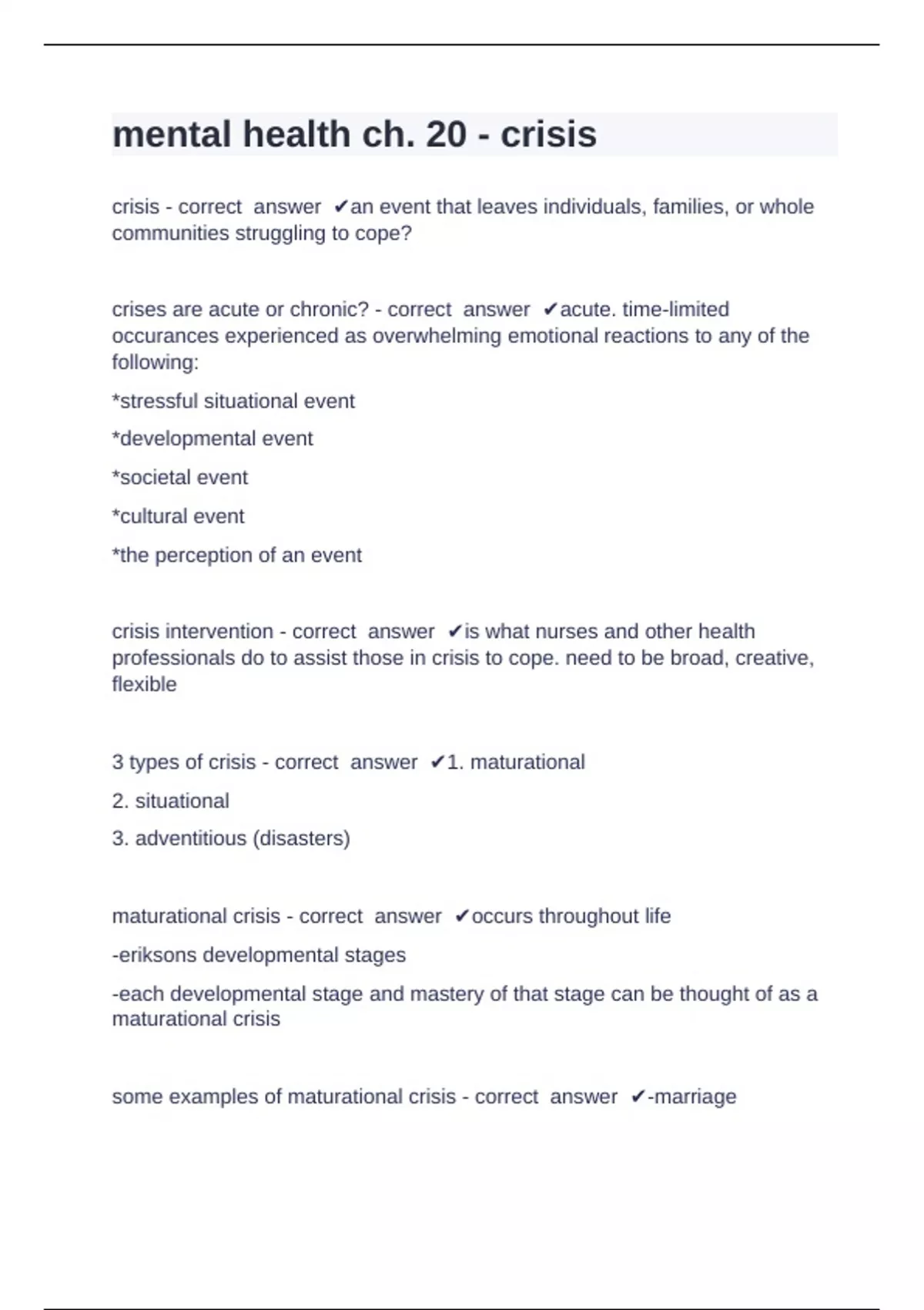 crises are acute or chronic? - correct answer ✔acute. time-limited