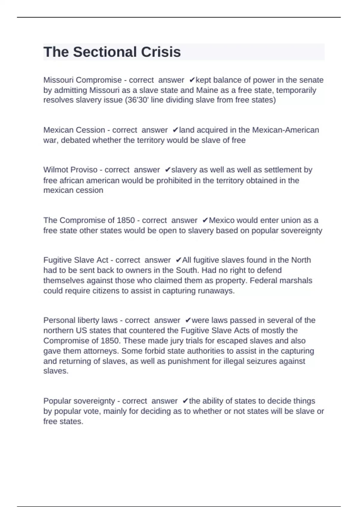 Mexican Cession - correct answer ✔land acquired in the Mexican-American
