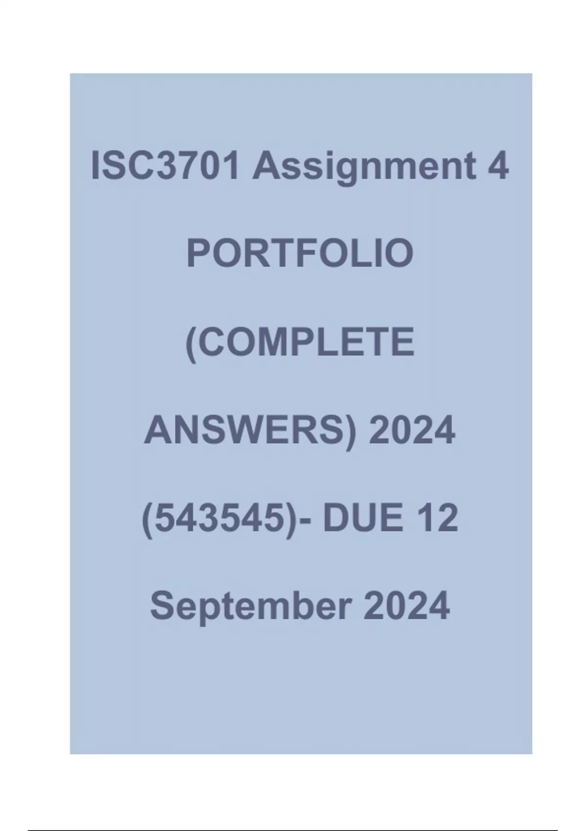 ISC3701 Assignment 4 PORTFOLIO (COMPLETE ANSWERS) 2024 (543545)- DUE 12 September 2024