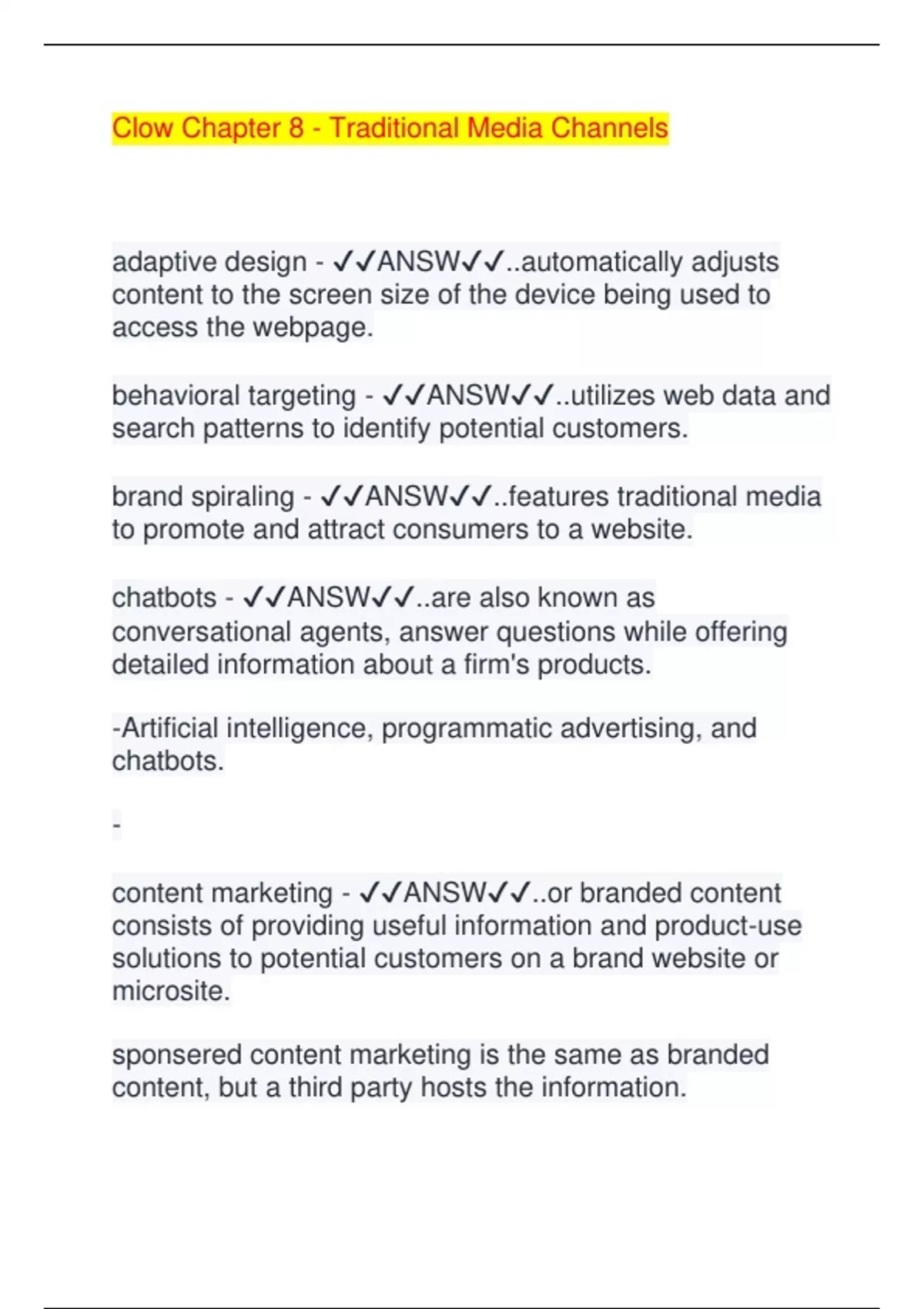 Clow Chapter 8 - Traditional Media Channels adaptive design - ANSW..automatically adjusts content to the screen size of the device being used to access the webpage