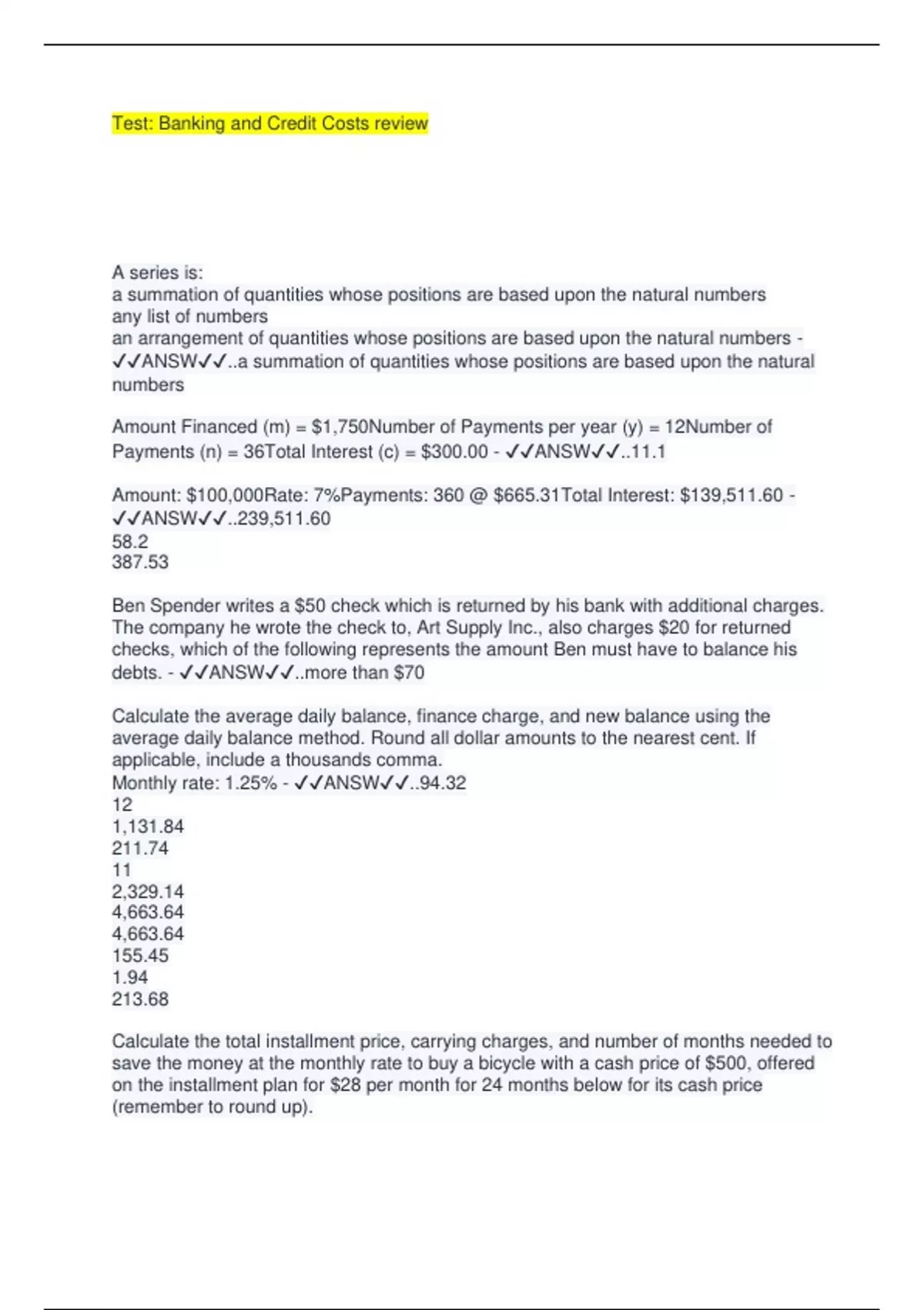 Test: Banking and Credit Costs review A series is: a summation of quantities whose positions are based upon the natural numbers any list of numbers an arrangement of quantities whose positions are based upon the natural numbers - ANSW..a summation of quantities whose positions are based upon the natural numbers