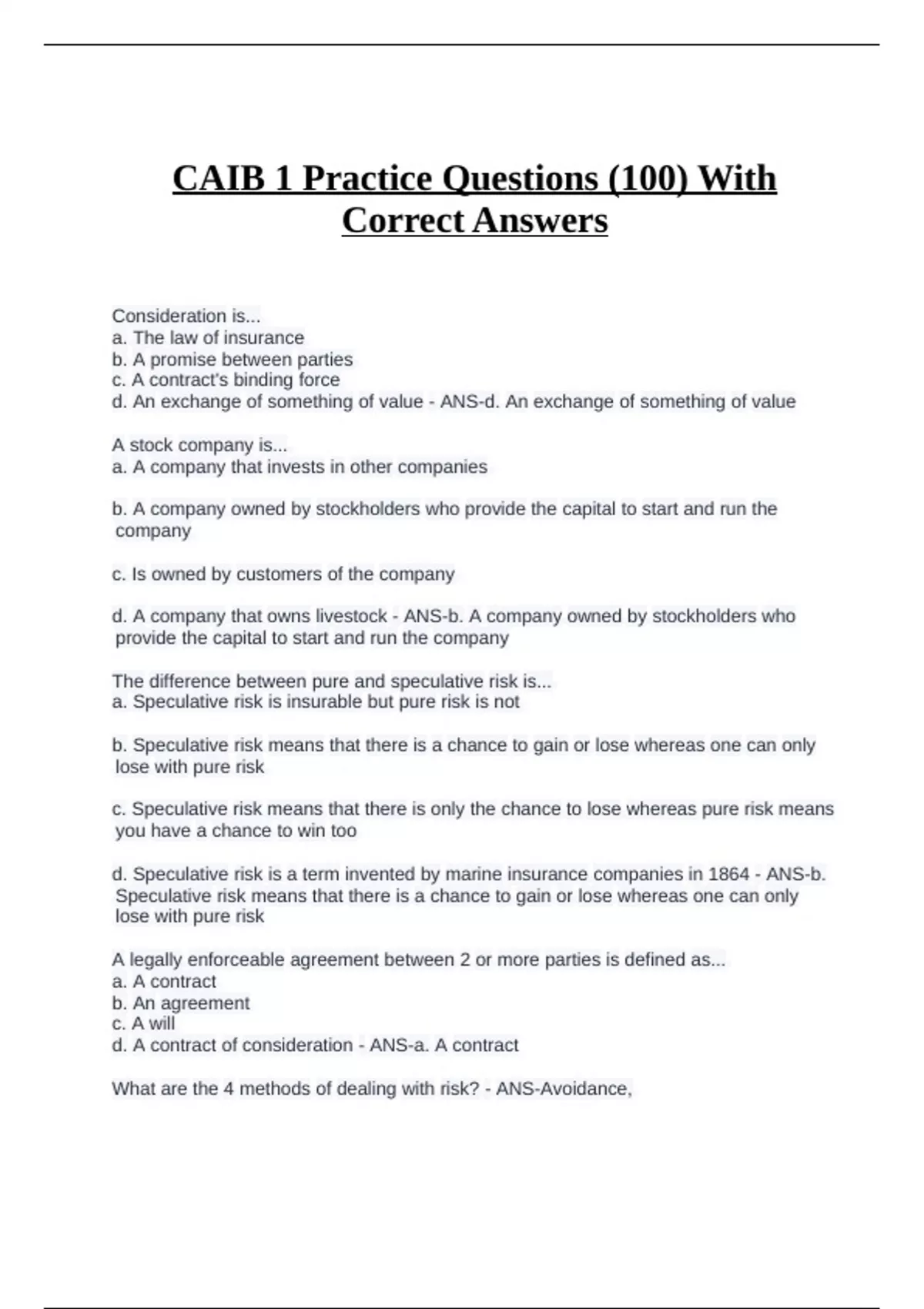 CAIB 1 Practice Questions (100) With Correct Answers.