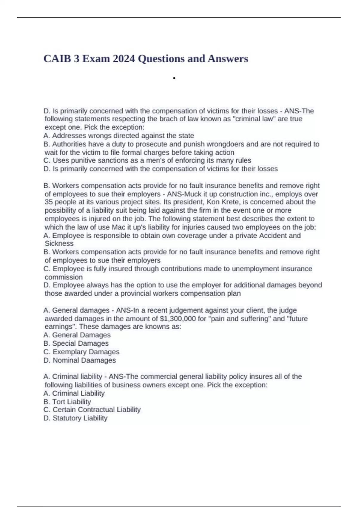 CAIB 3 Exam 2024 Questions and Answers