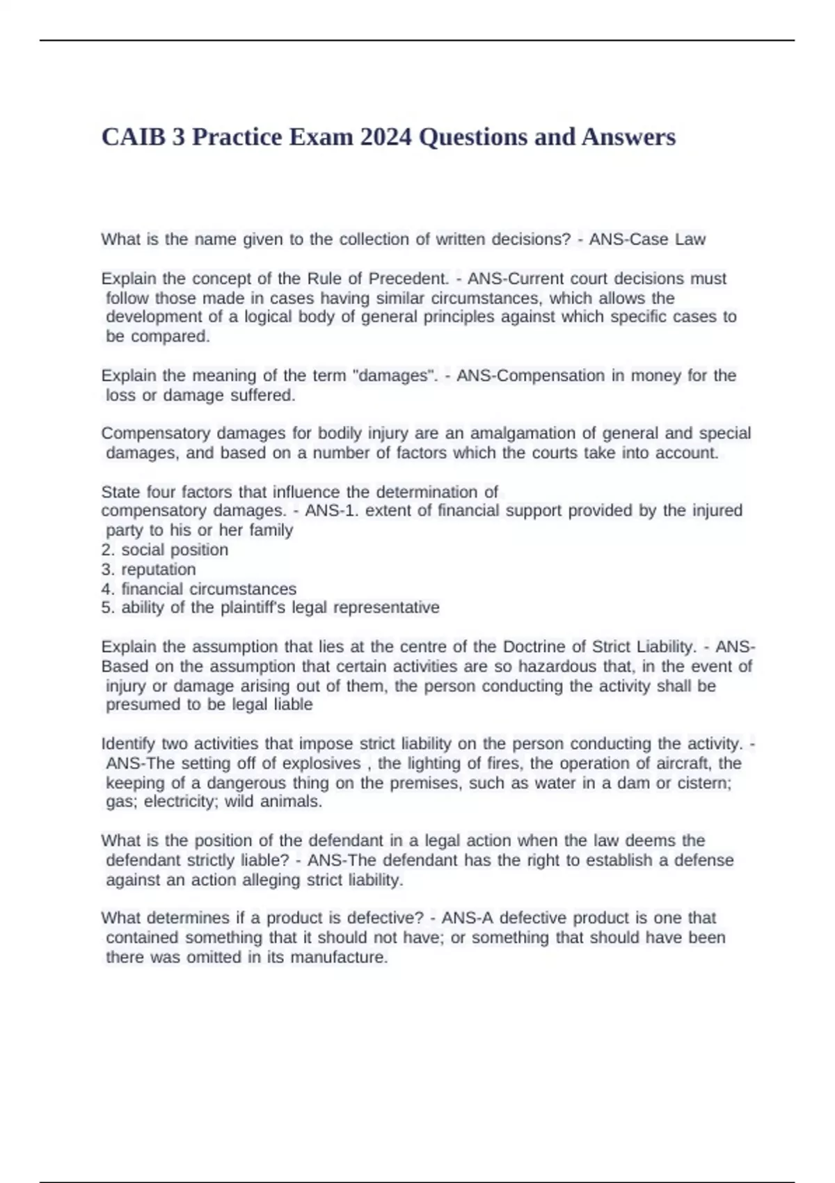 CAIB 3 Practice Exam 2024 Questions and Answers.