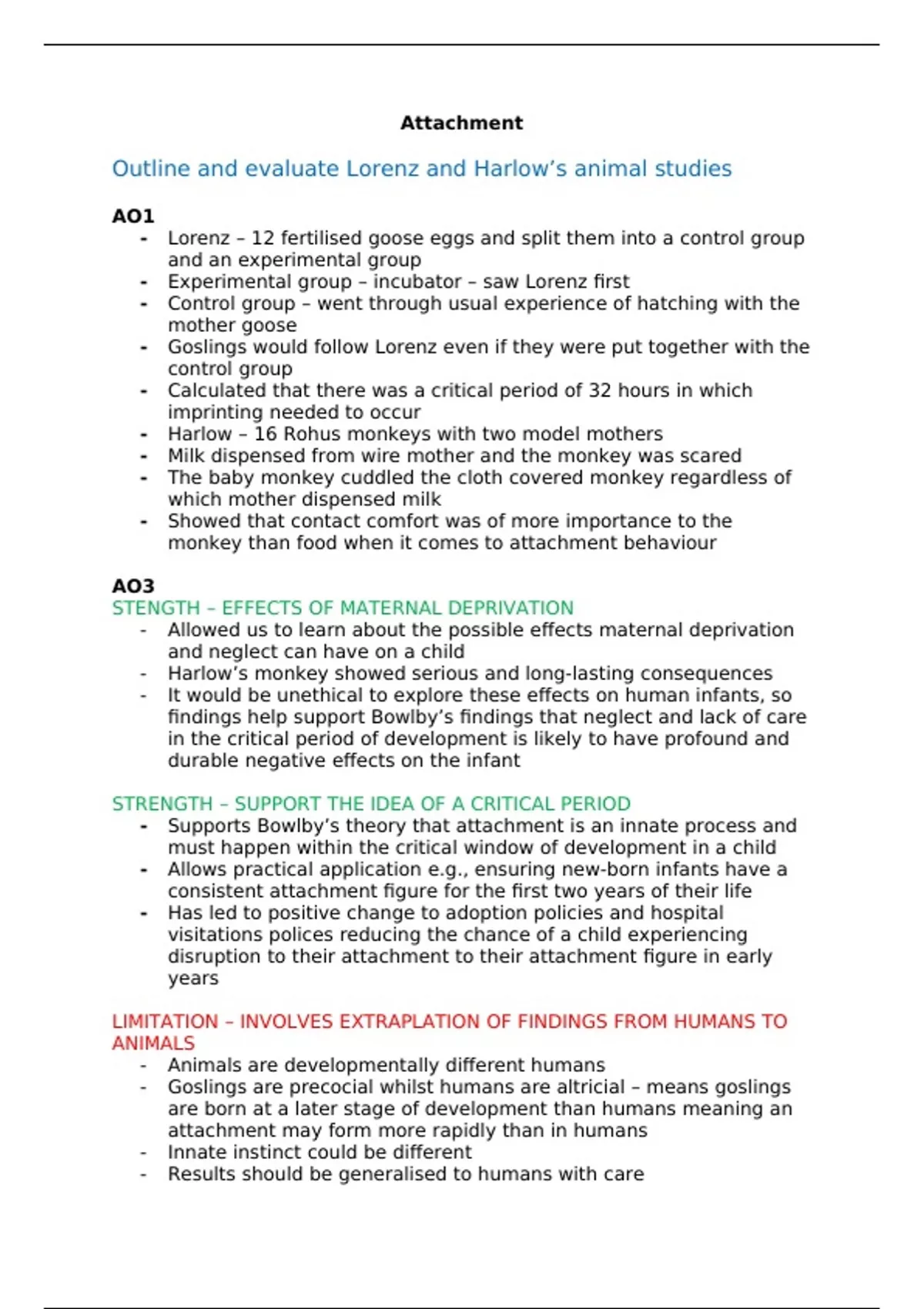 Outline and evaluate Lorenz and Harlow’s animal studies