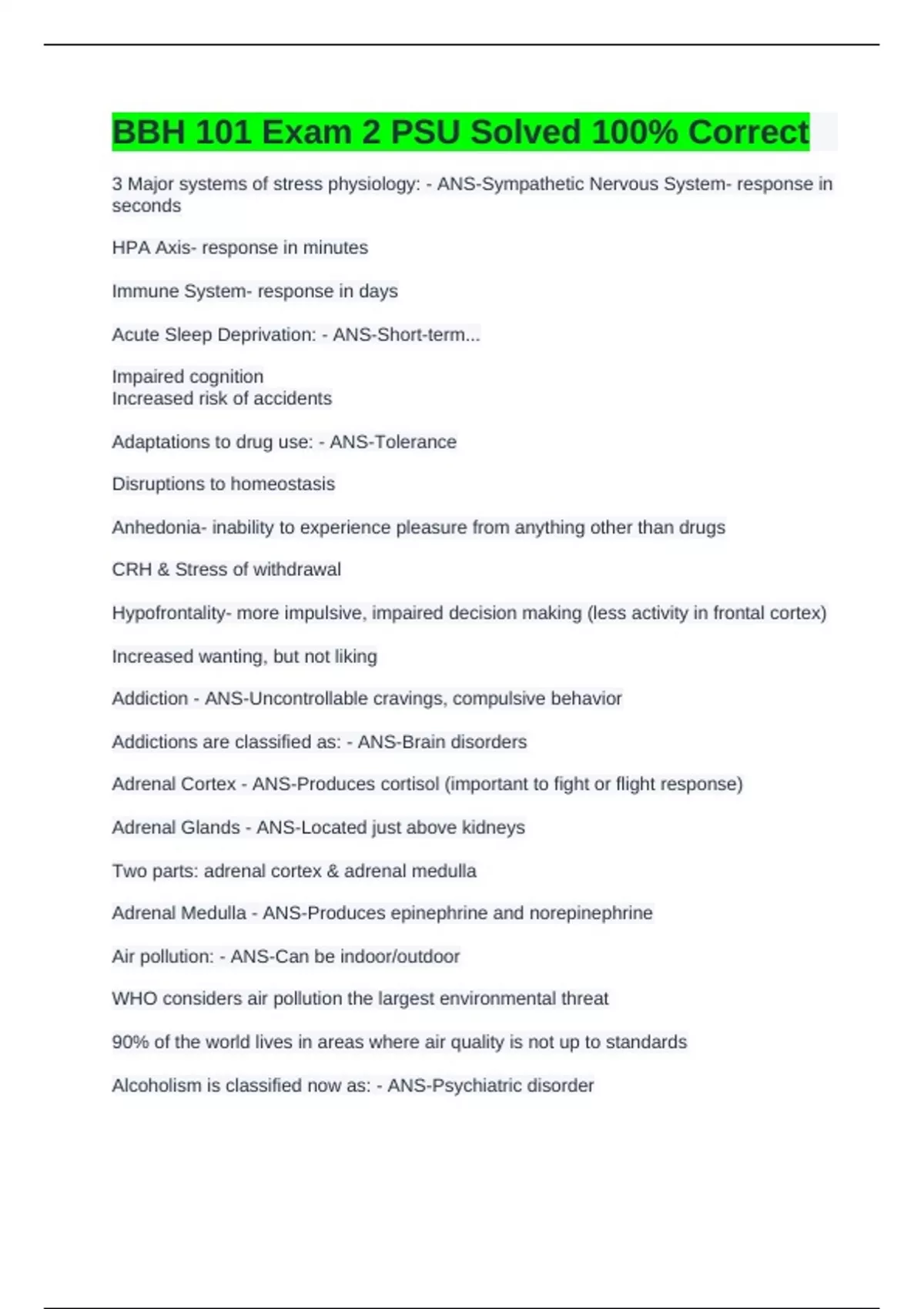 BBH 101 Exam 2 PSU Solved 100% Correct