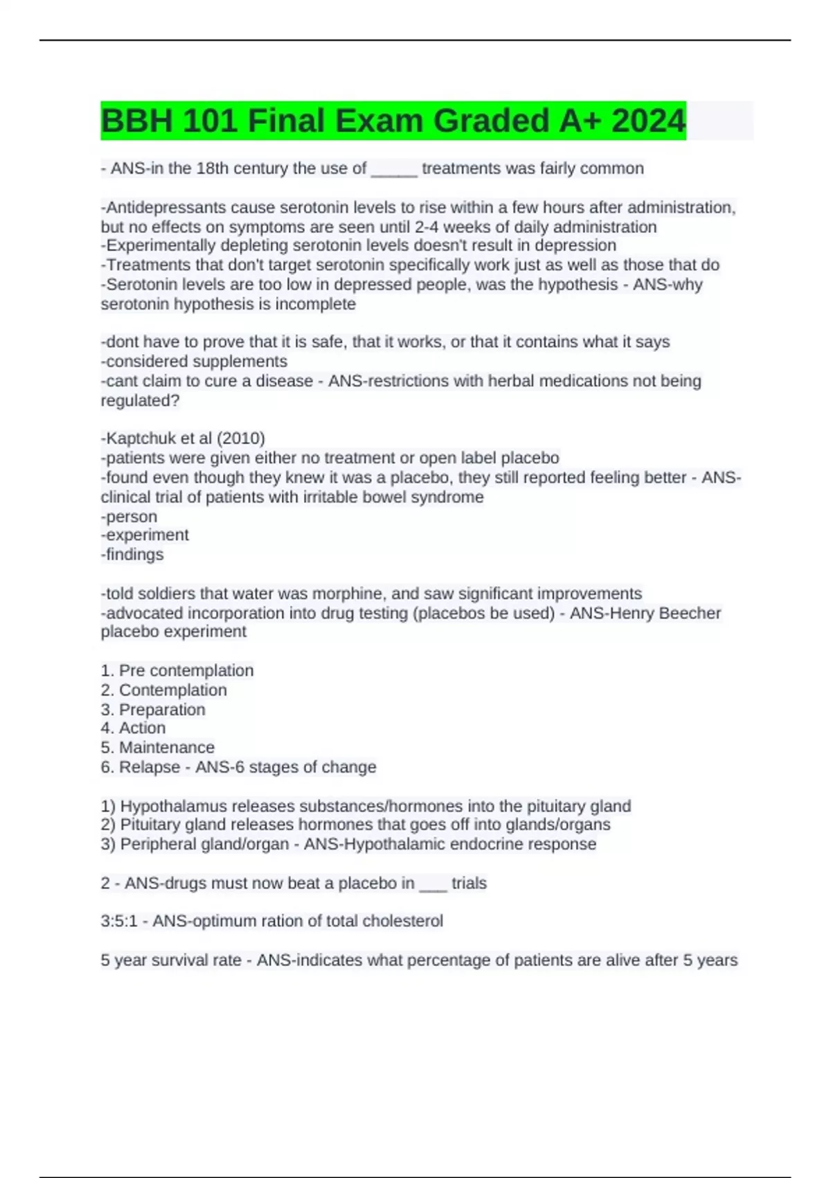 -found even though they knew it was a placebo, they still reported feeling better - ANS-