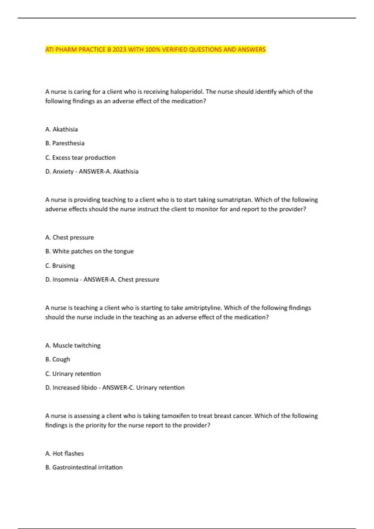 ATI PHARM PRACTICE B 2023 WITH 100% VERIFIED QUESTIONS AND ANSWERS