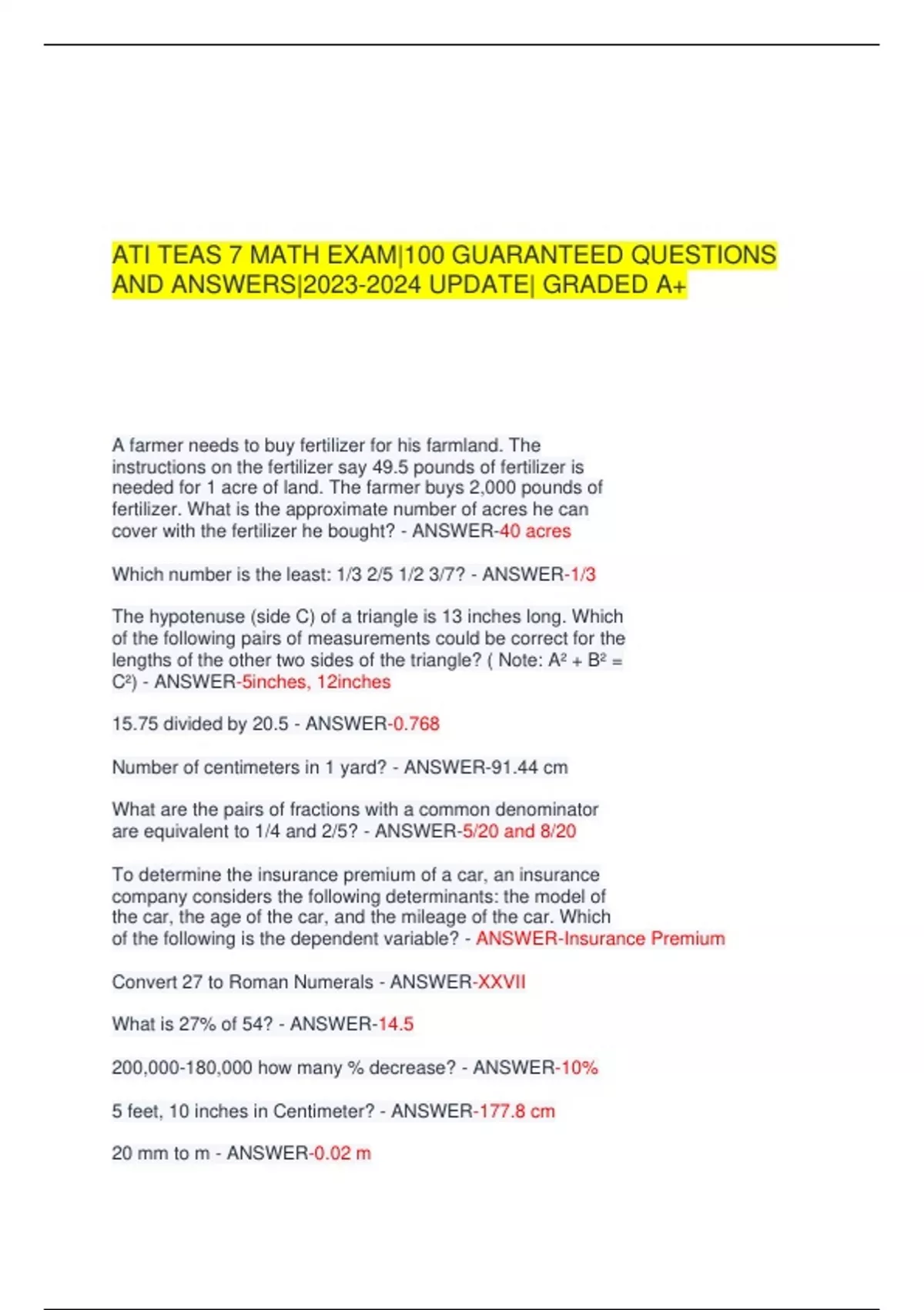 ATI TEAS 7 MATH EXAM|100 GUARANTEED QUESTIONS