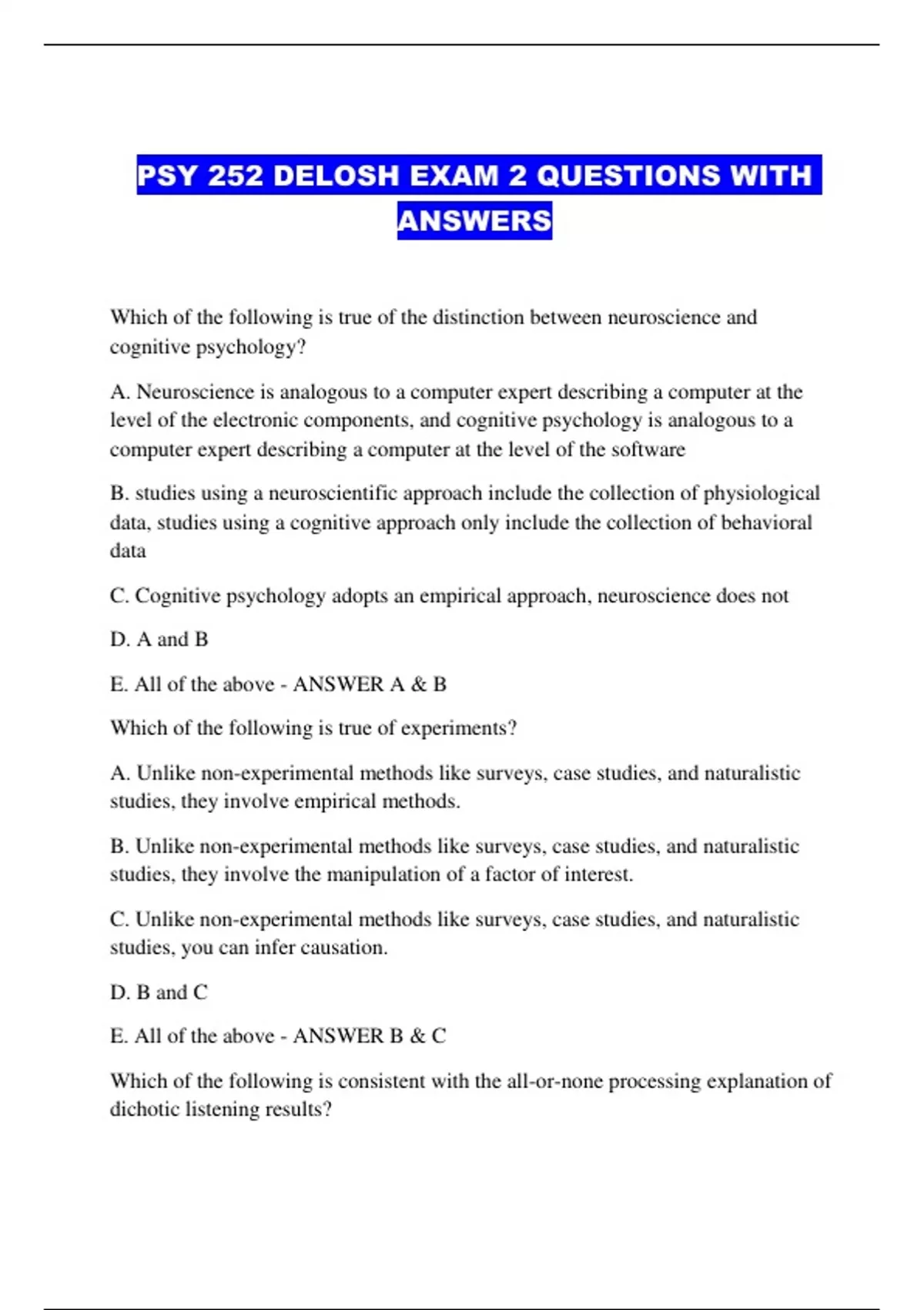 PSY 252 DELOSH EXAM 2 QUESTIONS WITH