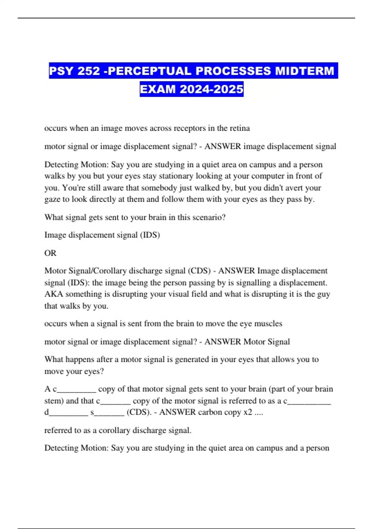 PSY 252 -PERCEPTUAL PROCESSES MIDTERM EXAM ...