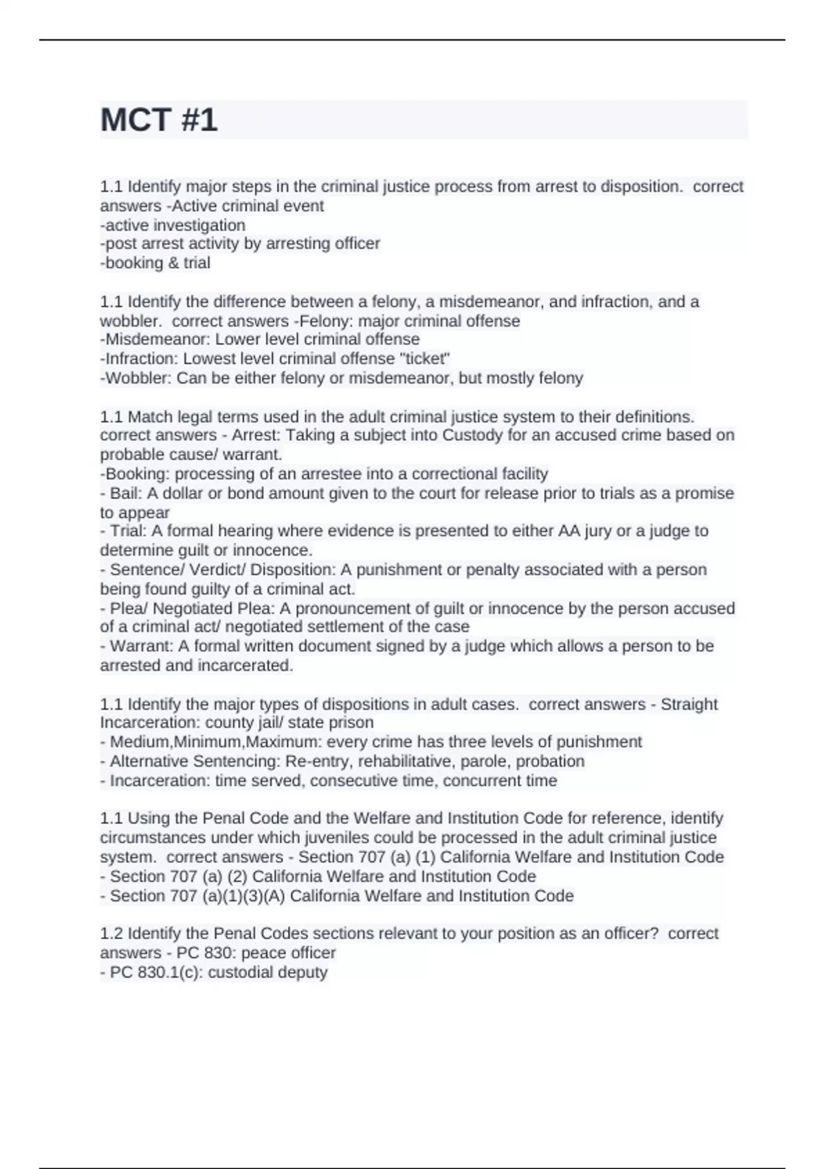 1.1 Identify major steps in the criminal justice process from arrest to disposition. correct