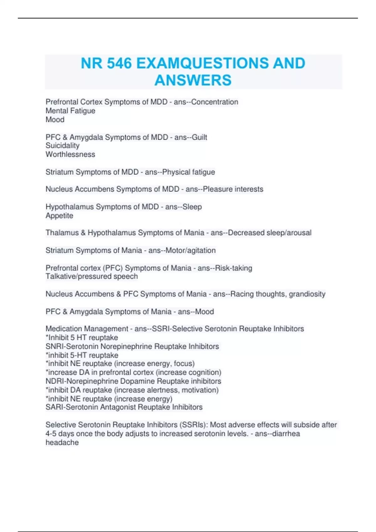 SelectivesSerotoninsReuptakesInhibitorss(SSRIs):sMostsadverseseffectsswillssubsidesafters