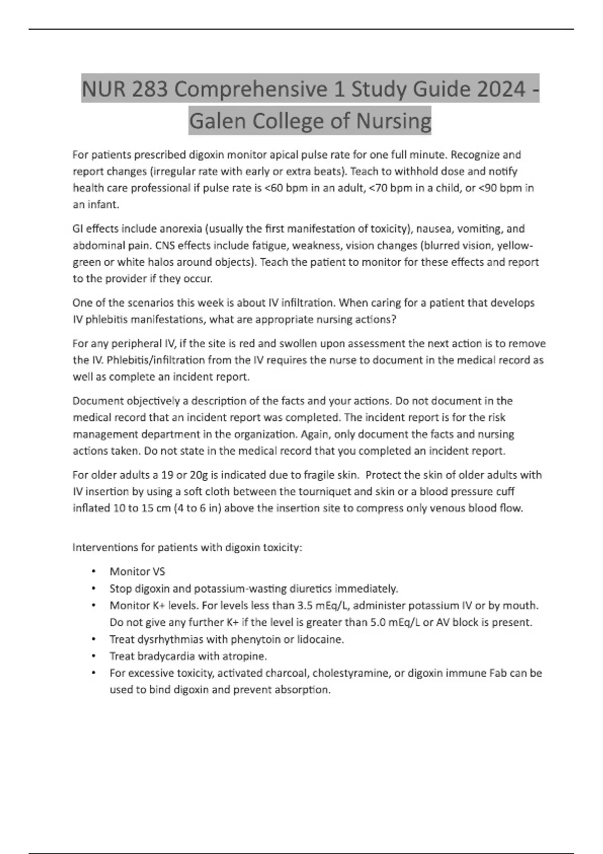 nur 283 comprehensive 1 study guide 2024 galen c
