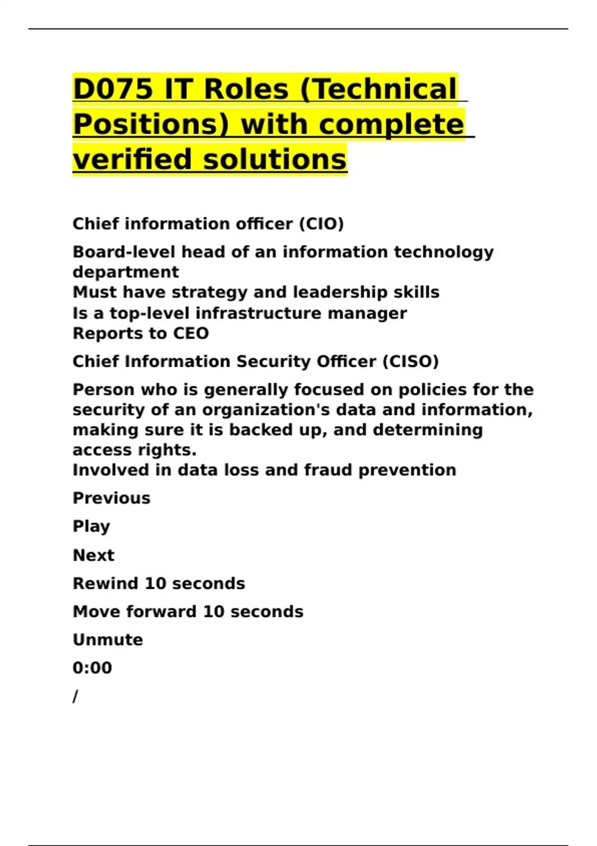 D075 IT Roles (Technical Positions) with complete verified solutions.